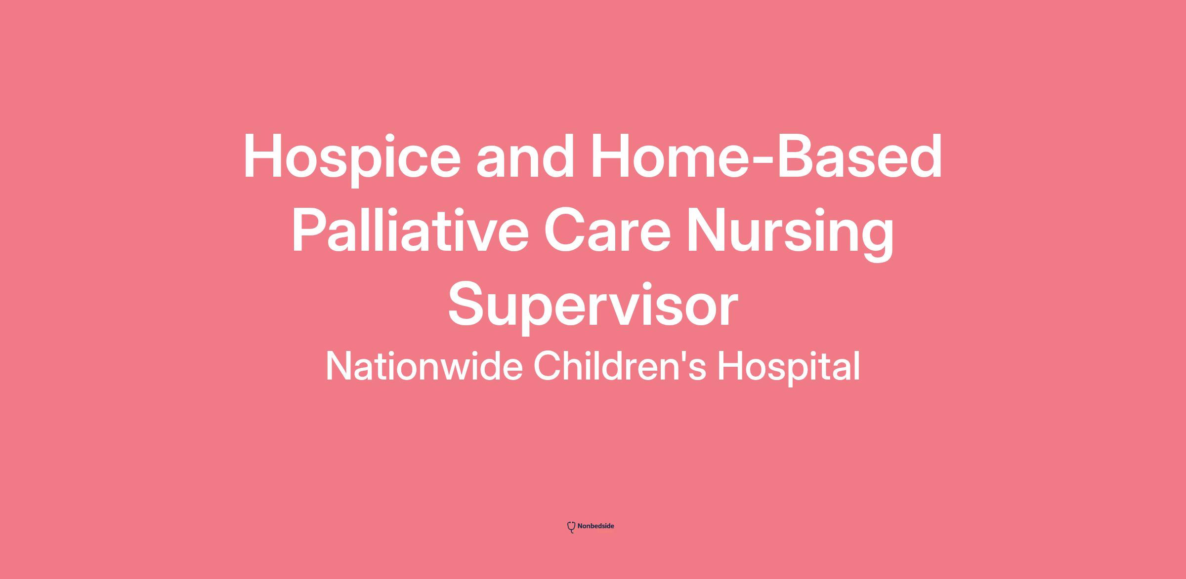 Hospice and Home-Based Palliative Care Nursing Supervisor Join to apply for the Hospice and Home-Based Palliative Care Nursing Supervisor role at Nationwide Children's Hospital