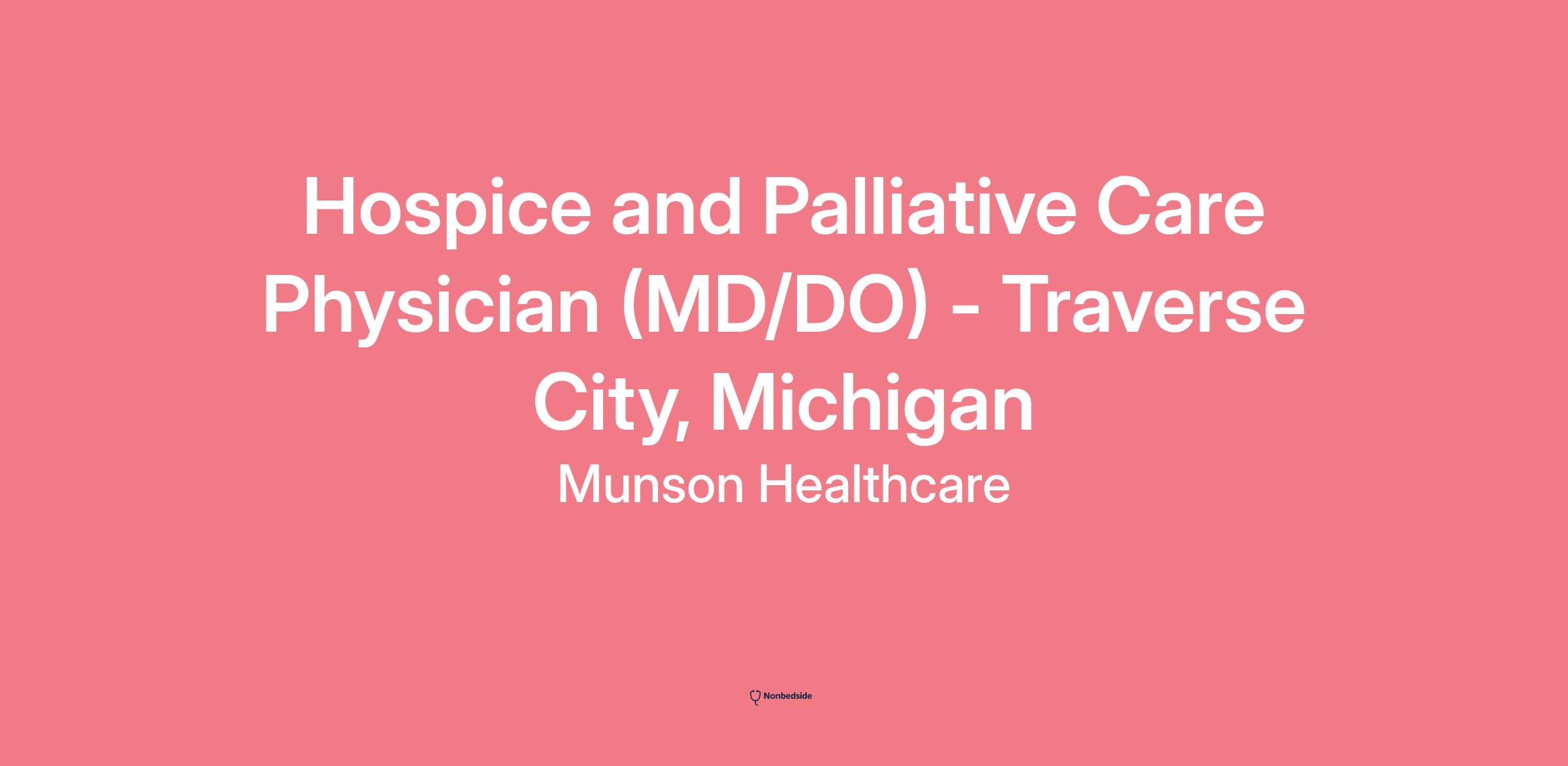 Munson Healthcare is seeking a committed and compassionate Hospice and Palliative Medicine Physician to join our expanding palliative care team in Traverse City, Michigan. This is an exceptional opportunity for a physician with a strong work ethic and dedication to clinical excellence in both inpatient and outpatient palliative medicine, as well as hospice care. The ideal candidate will be joining a team of experienced, friendly, and initiative-taking healthcare providers, clinicians, and support staff who are dedicated to delivering excellent care to their patients and community.