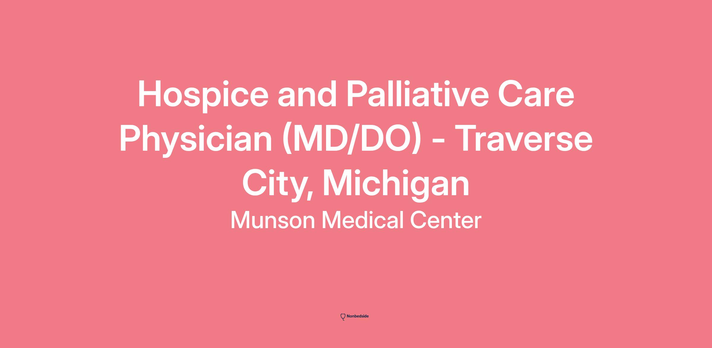 Summary:?Munson Healthcare is seeking a committed and compassionate Hospice and Palliative Medicine Physician to join our expanding palliative care team in Traverse City, Michigan. This is an exceptional opportunity for a physician with a strong work ethic and dedication to clinical excellence in both inpatient and outpatient palliative medicine, as well as hospice care. The ideal candidate will be joining a team of experienced, friendly, and initiative-taking healthcare providers, clinicians, and support staff who are dedicated to delivering excellent care to their patients and community.