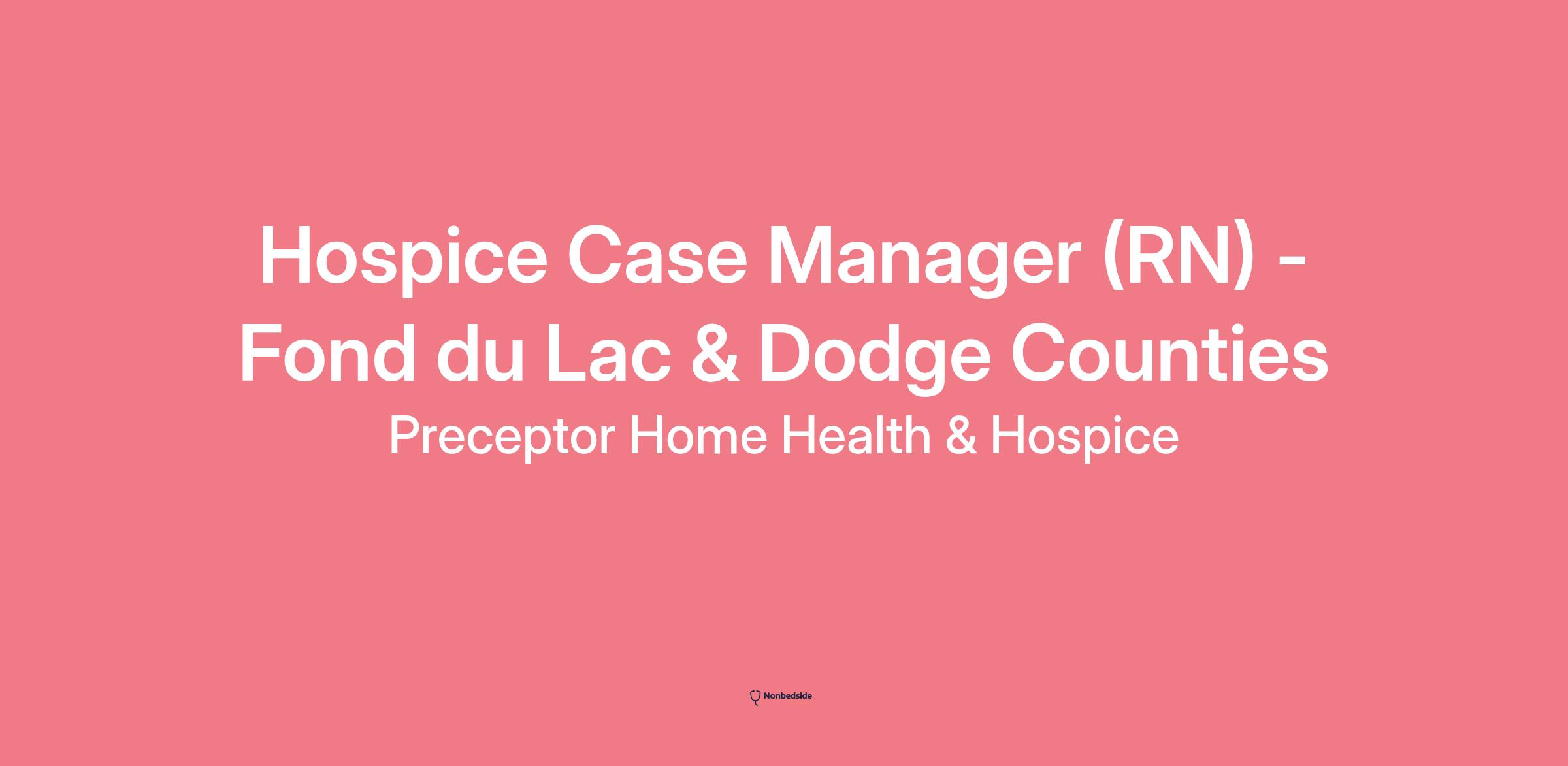 Overview SIGN-ON BONUS OFFERRED!!!! We are seeking a Hospice RN Case Manager to provide care in Fond du Lac and Dodge Counties.
