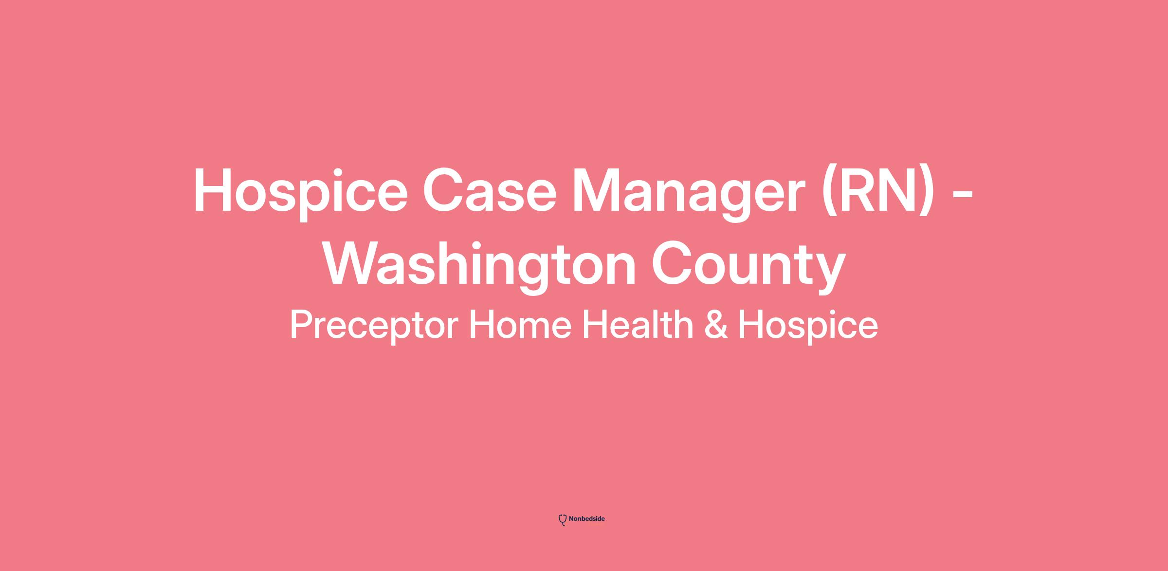 We are seeking a Hospice RN Case Manager to provide care in Washington County!!
