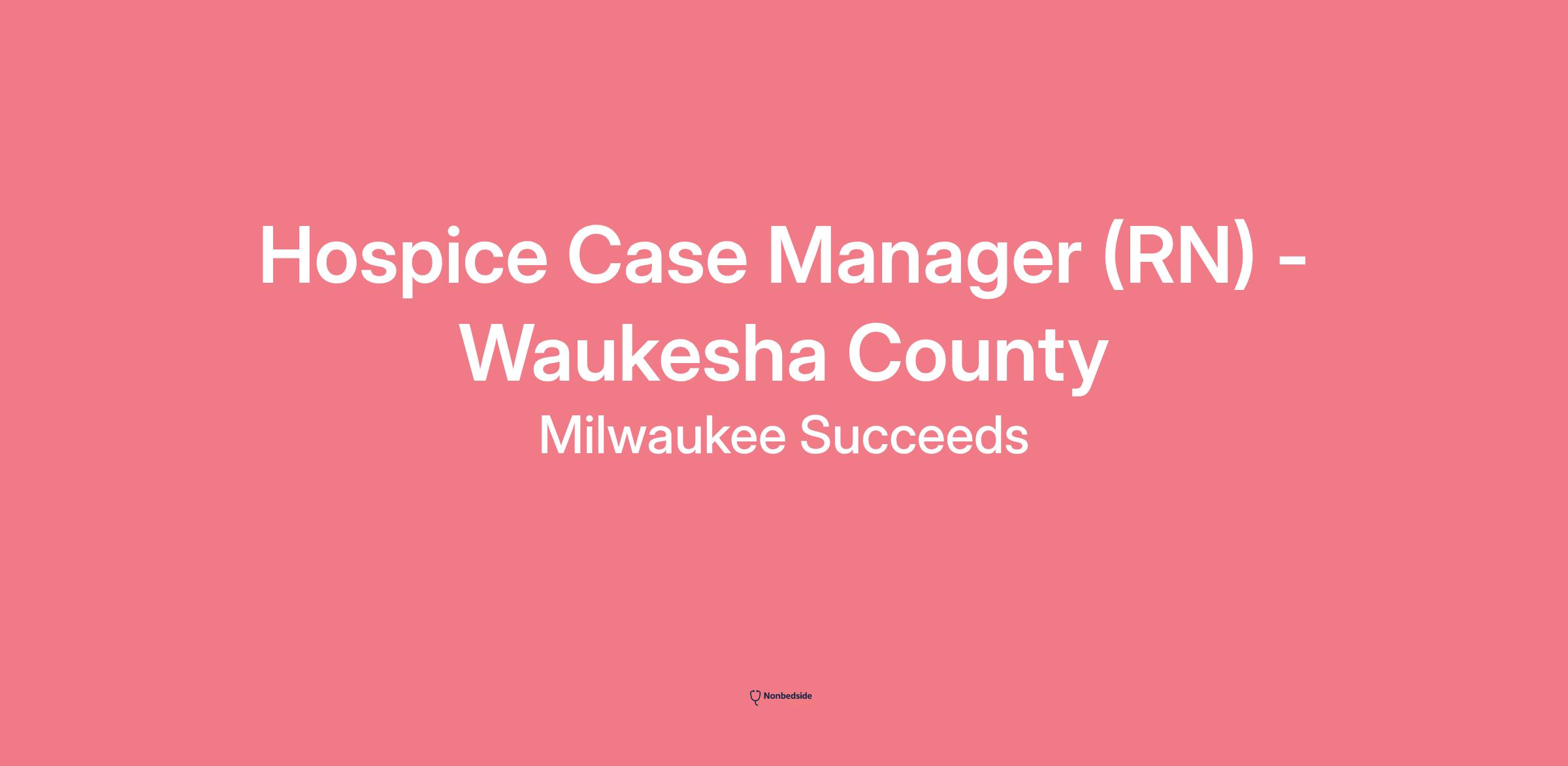 We are seeking a Hospice RN Case Manager to provide care in Waukesha County!!