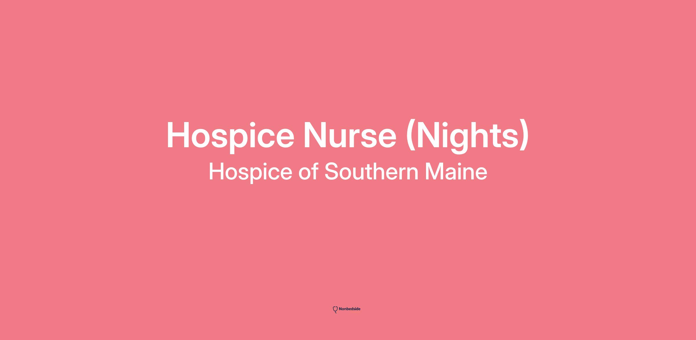 Position Overview Hospice of Southern Maine is seeking a part-time 24-hour night shift Registered Nurse (RN) to provide quality, cost-effective hospice nursing care within an interdisciplinary team, in a competent holistic manner for an assigned group of patients in the hospice house, through assessment, planning, implementation and evaluation of nursing care; to empower patients and families to achieve maximum levels of comfort and independence.