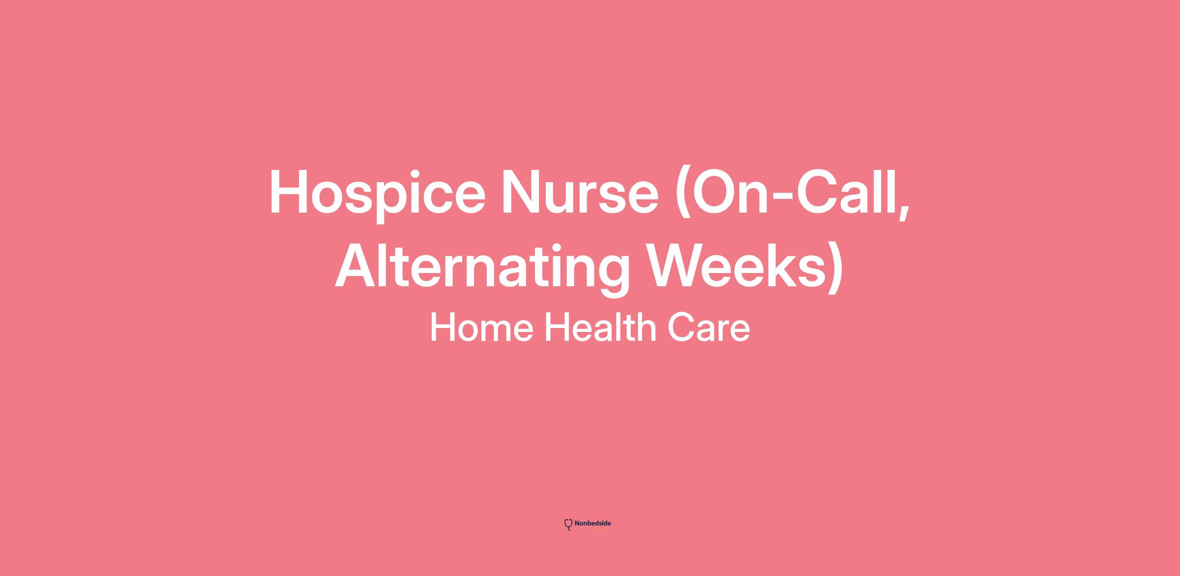 Overview Hospice Nurse (On-Call, Alternating Weeks) On-Call Hospice RN with 7 days on / 7 days off schedule, full-time position in the Greater Twin Cities Metro Area. Compensation: $90,000$130,000/year, depending on experience.