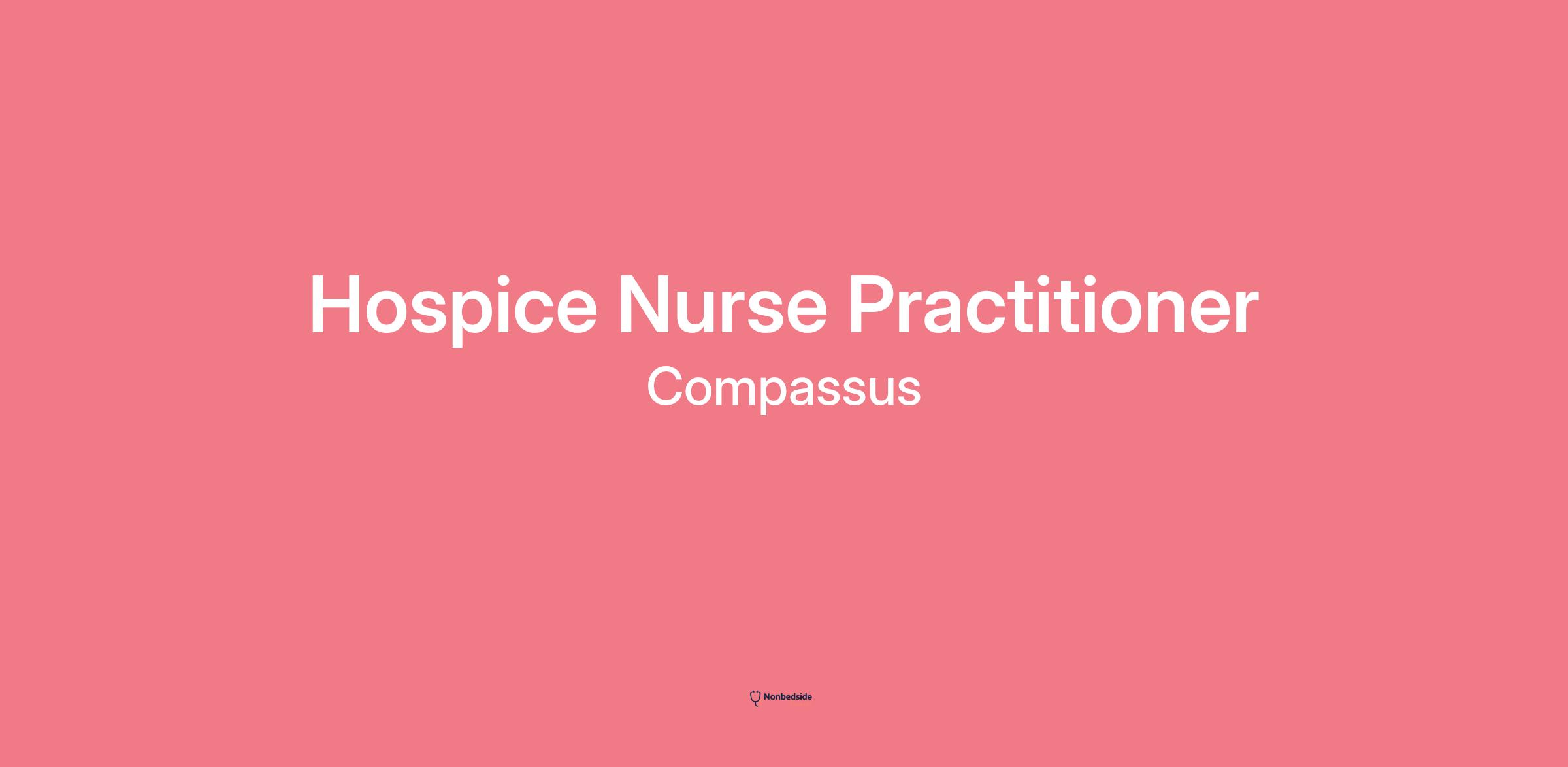 **Company:**Compassus**Position Summary**The Nurse Practitioner - PPV is responsible for modeling the Compassus values of Compassion, Integrity, Excellence, Teamwork, and Innovation and for promoting the Compassus philosophy, using the 6 Pillars of Success as the foundation. S/he is responsible for upholding the Code of Ethical Conduct and for promoting positive working relationships within the company, among all departments, and all external stakeholders. The Nurse Practitioner, if providing palliative care, cares for patients facing chronic, complex, and/or life-threatening conditions at various locations within the flow of patient care. S/he provides assessments, disease and treatment education, and symptom management to meet the needs of palliative care patients and their families. The Nurse Practitioner helps the patient and family maintain their maximum level of comfort and coping. S/he provides care and support in collaboration with the PCP and specialists; and ensures compliance with practice standards and codes. S/he must collaborate appropriately with the assigned Compassus Medical Director. S/he must flex schedule to meet agency needs. The Nurse Practitioner, if providing hospice care, functions as an extension of the interdisciplinary team (IDT) and hospice physician to provide routine recertification and emergency assessments, educational, and evaluative services to meet the needs of patients and their families. S/he helps the patient and family maintain their maximum level of comfort and coping. S/he flexes schedule to meet agency visit needs and may be asked to provide after-hours emergency visits and/ or admissions.**Position Specific Responsibilities*** If providing Hospice Care:* Performs routine and emergency assessments: + Completes routine and emergency recertification visits on each patient entering their 3rd benefit period or beyond (including admissions and transfers). + Completes routine and emergency assessments on each patient as indicated by departmental policy. + Records observations, treatments, and other pertinent information. + Communicates with Medical Director, Attending Physician, DCS and IDT as directed regarding findings from the visits and any measures to alleviate symptoms. + Provides physical and emotional care to support the patient and family in period of crisis.* Prevents unwarranted hospitalizations by meeting patient and family needs in the home. In our programs that serve palliative care, the additional following outpatient responsibilities are needed: + Performs routine and emergency assessments related to outpatient palliative care visits. + Performs bedside palliative care patient/family evaluation in the patient’s place of residence. + Assists with diagnosis, treatment, and management of acute and chronic health conditions. + Orders, performs, and interprets laboratory and radiology tests within scope of professional practice. + Prescribes medications including controlled substances to the extent delegated and licensed. + Orders treatments and durable medical equipment as indicated. + Performs other therapeutic or corrective measures as indicated, including urgent care. + Consults with palliative care physician or designees as needed, informs primary physician of services provided and collaborates with other physicians as needed. + Assists in all facets of care coordination for palliative care referrals. + Prepares and maintains accurate patient records, charts, and documents to support sound medical practice and reimbursement for services provided. + Complies with applicable laws and regulations with respect to Collaborative Agreements. + Initiates reimbursement for services rendered. + Assists patients and families with goal setting related to treatment options and advanced care planning. + Provides training and continuing education for staff. + Assists in development of clinical practice guidelines/standards in support of quality palliative care. + Adheres to the practice of confidentiality regarding patients, families, staff and the organization.* Collaborates/Communicates with Medical Director, attending physician, DCS, and IDT: + Collaborates/ Communicates with IDT needs of patient for clinical and psycho-social interventions. + Assists in identifying the need for intervention of other IDT members. + Effectively communicates patient and family needs to IDT. + Completes and submits required paper work within 24 hours of visit completion.* Educates patient and caregiver regarding: + Care of patient. + Disease process. + Dying Process. + Symptom control. + Wound care.* Performs other duties as assigned.* If providing Hospice Face to Face Visits:* Performs routine and emergency assessments: + Completes routine and emergency recertification visits on each patient entering their 3rd benefit period or beyond (including admissions and transfers). + Records observations, treatments, and other pertinent information. + Communicates with Medical Director, Attending Physician, DCS and IDT as directed regarding findings from the visits and any measures to alleviate symptoms. + Provides physical and emotional care to support the patient and family in period of crisis.* Performs other duties as assigned.* If providing Palliative Care:* Performs routine and urgent assessments: + Consistent communication of availability to manager. + A minimum of 4 days of availability per month is required, however a minimum number of visits per month is not guaranteed to the PPV NP. + Ability to triage consults by patient acuity. + Performs bedside palliative care with patient/family education. + Orders, performs, and interprets laboratory and radiology tests within scope of professional practice. + Prescribes medications including controlled substances to the extent delegated and licensed. + Orders treatments and durable medical equipment as indicated. + Performs other therapeutic measures as indicated. + Consults with palliative care physician or designees as n