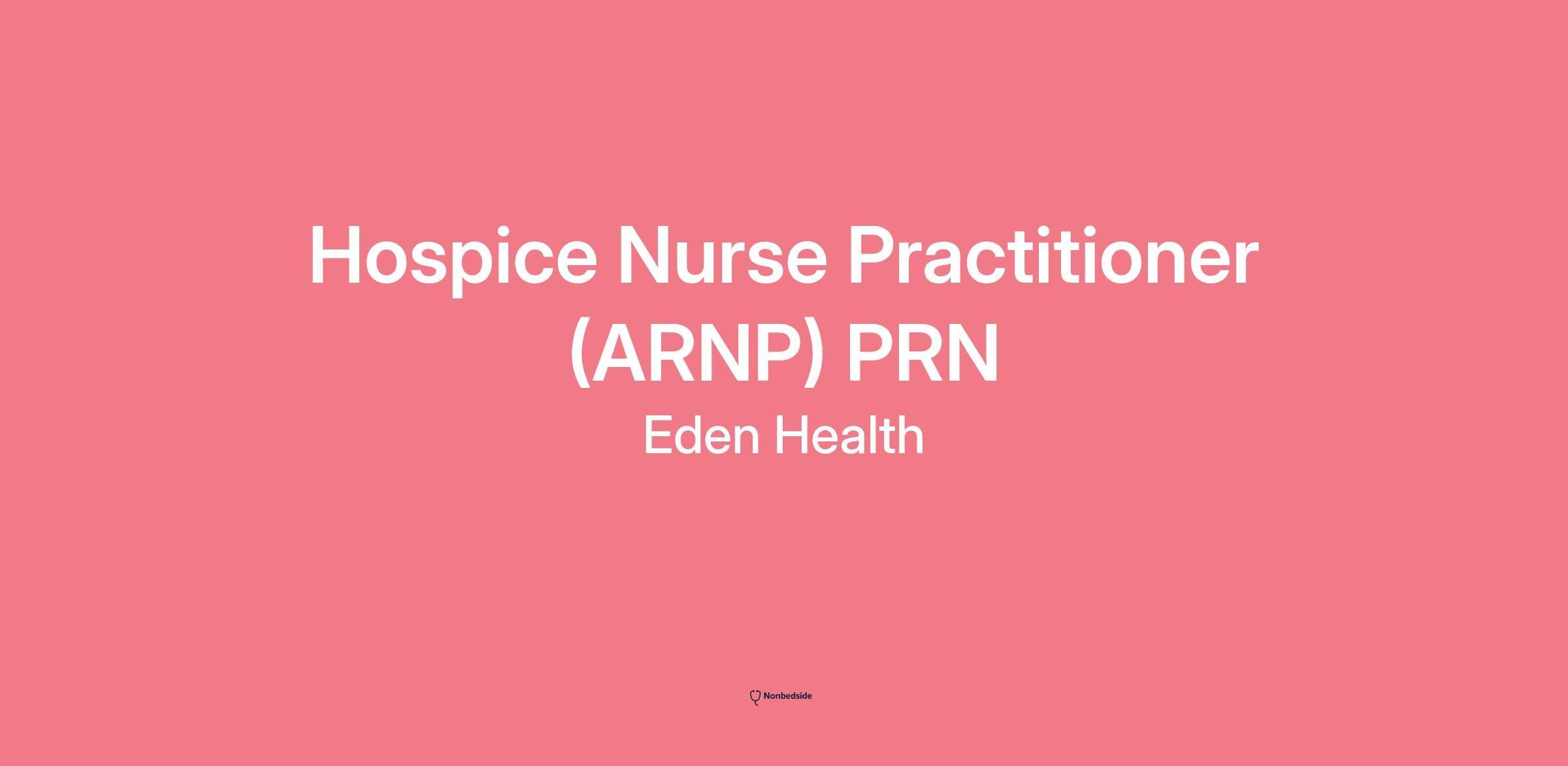 Eden Hospice is hiring a Nurse Practitioner who will work autonomously but in collaboration with Physicians to provide primary medical care to patients with chronic or life limiting illnesses that require Palliative or Hospice care interventions. (Bonner County, Kootenai County and Spokane County)