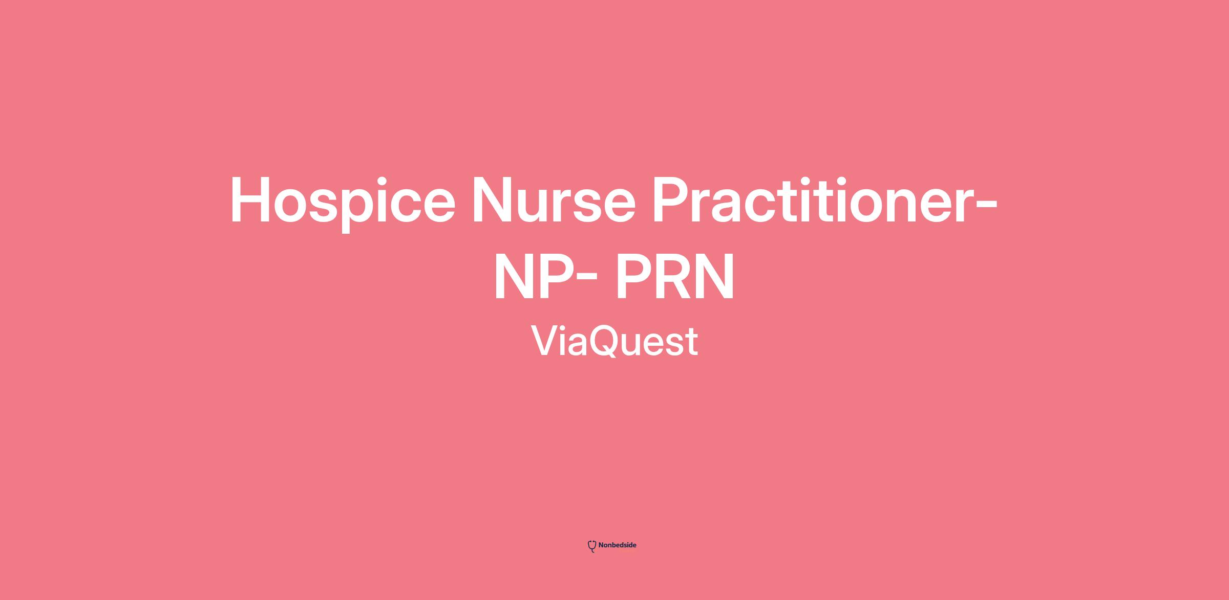 Hospice Nurse Practitioner- PRN A Great Opportunity/ Linton IN At ViaQuest Hospice we take a holistic approach, offering services to treat the physical, emotional and mental needs of our patients and their loved ones. Apply today and make a difference in the lives of the patients we serve!