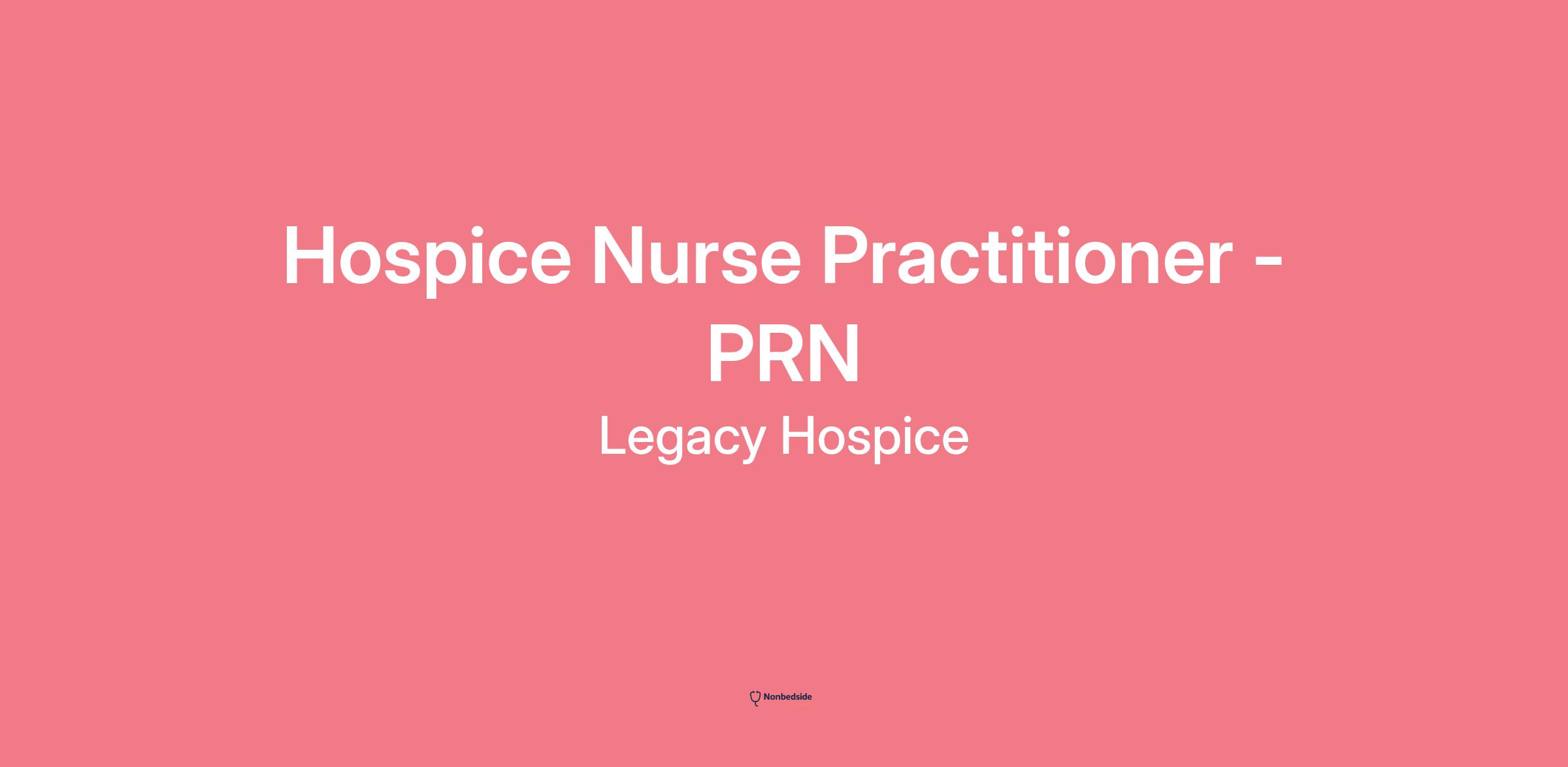 Legacy Hospice provides compassionate, patient‑centered care to individuals and families facing life‑limiting illness. We’re seeking a dedicated Nurse Practitioner (NP) to join our team and help ensure our patients receive high‑quality, holistic care in the comfort of their homes.