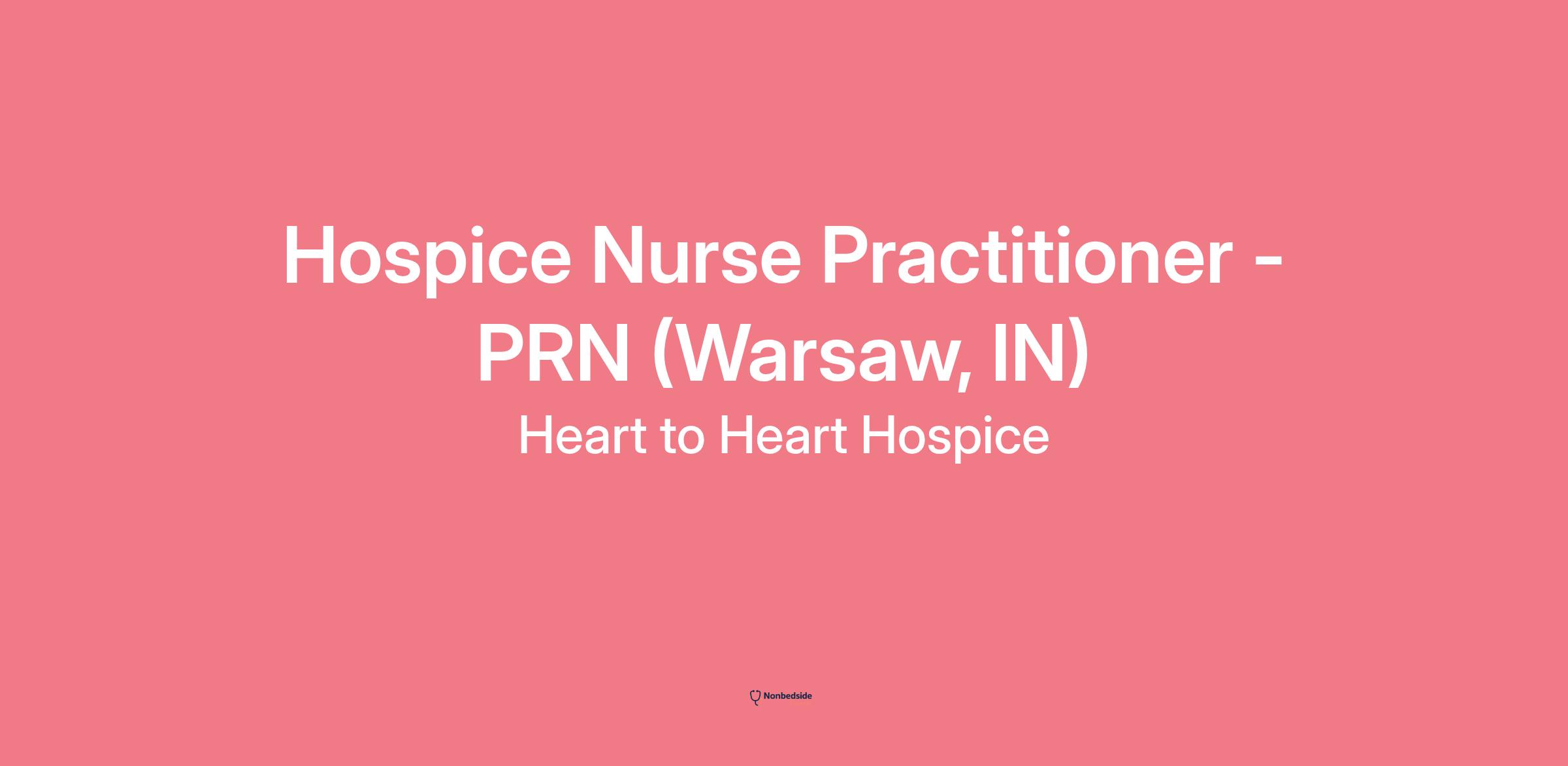 Working with Heart to Heart Hospice We are looking for a compassionate, talented and experienced Nurse Practitioner that is experienced in customer service and eager to join an exciting organization. You can make a difference in the lives of others!
