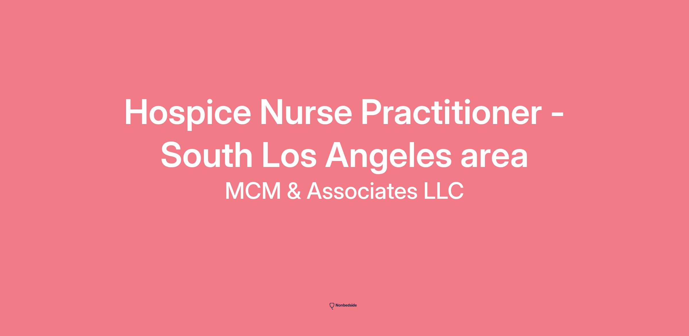 About the job Hospice Nurse Practitioner - South Los Angeles area