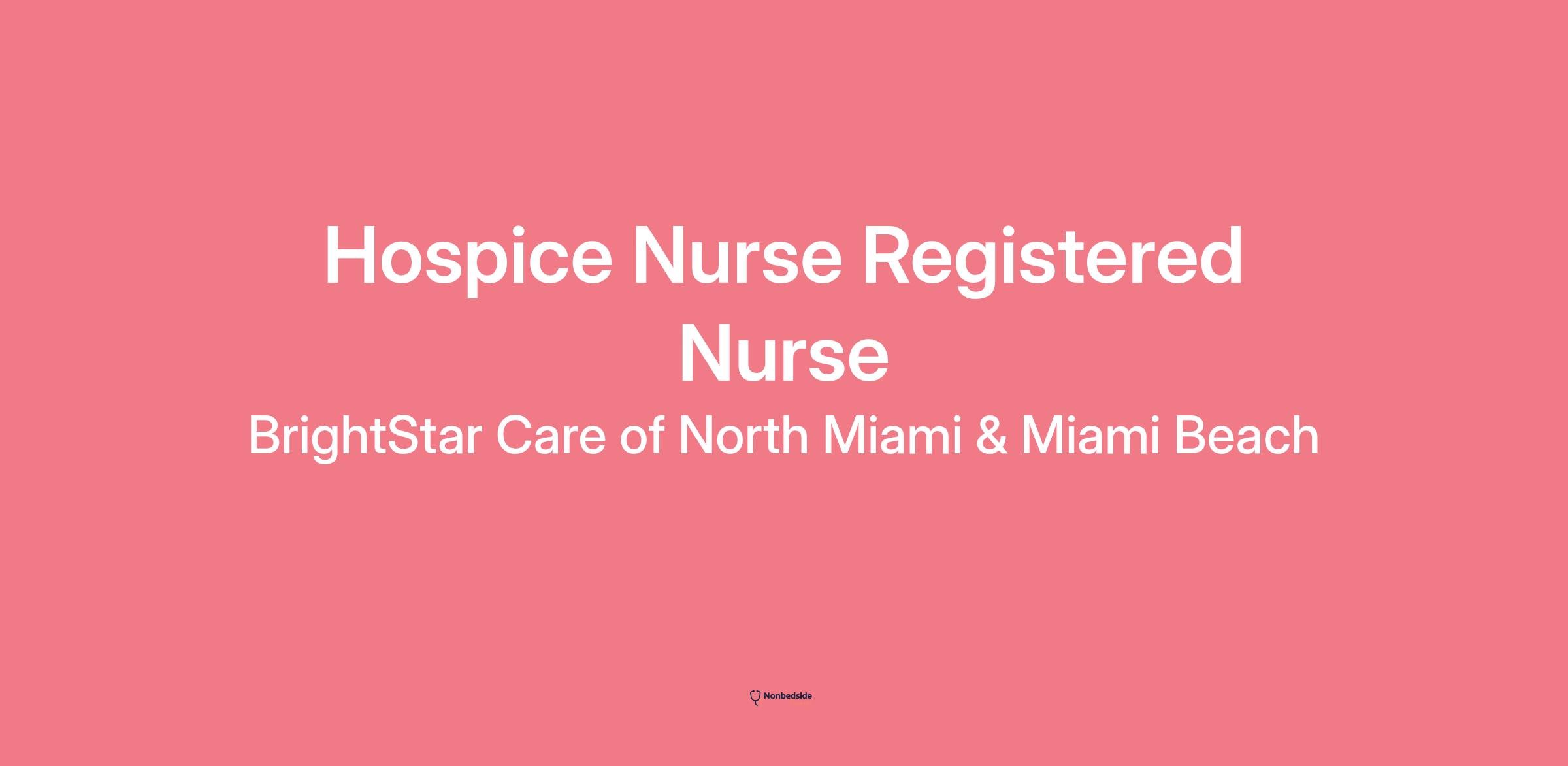 Overview BrightStar Care is looking to add Registered Nurses to our team to work as hospice nurses in the Miami/North Miami areas. We are seeking compassionate individuals to support patients and their families as a hospice nurse on our team. We prioritize our employees by ensuring they receive exemplary benefits and a flexible schedule to fit your lifestyle!