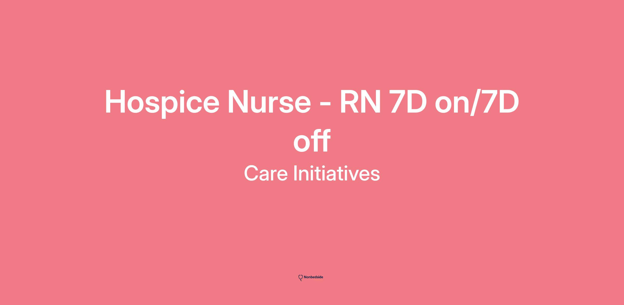 Join to apply for the Hospice Nurse - RN 7D on/7D off role at Care Initiatives .