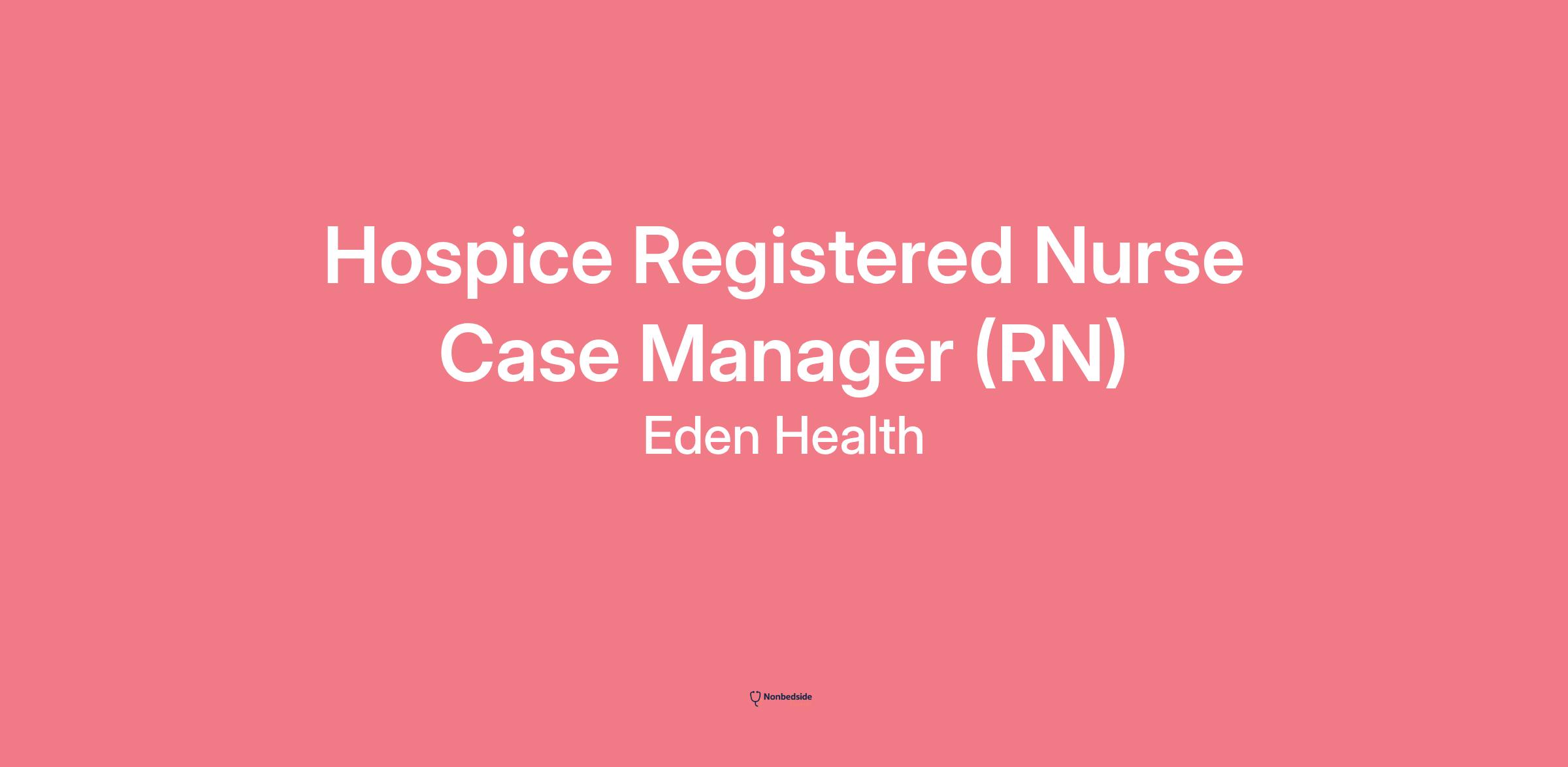 Eden Hospice is hiring a Registered Nurse Case Manager to provide in-home services to our patients throughout the greater Portland Metro area.