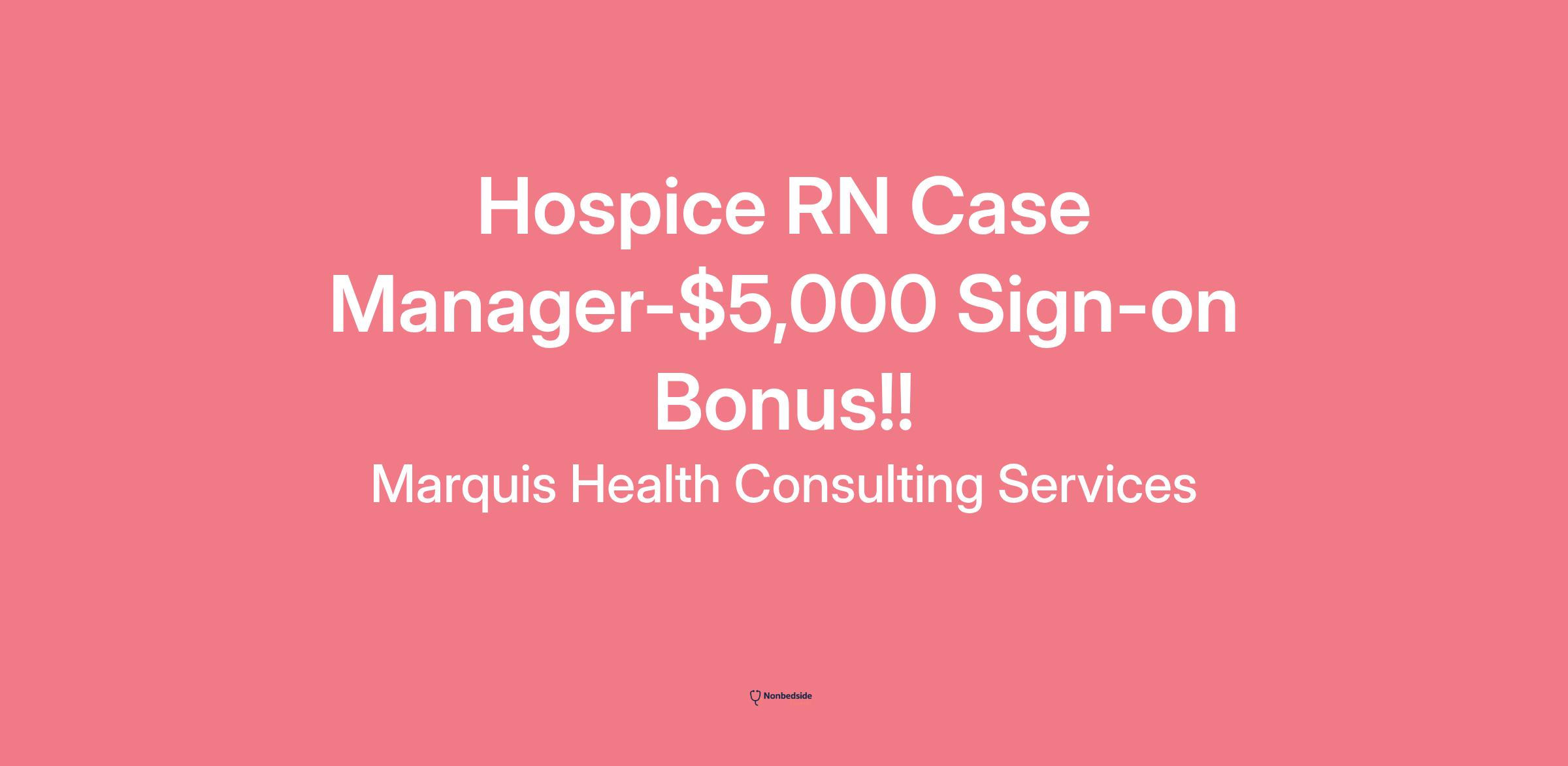 Join to apply for the Hospice RN Case Manager role at Marquis Health Consulting Services