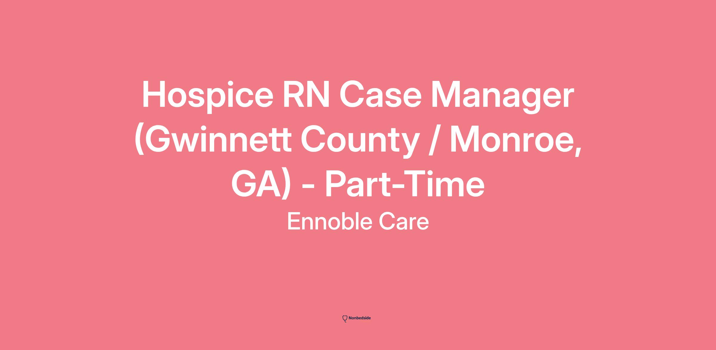 We are seeking a dedicated Hospice Registered Nurse Case Manager to serve patients and families throughout the Gwinnett County and Monroe, GA region. This part‑time role focuses on providing skilled nursing assessments, care planning, and support to maximize patient comfort and family well‑being.