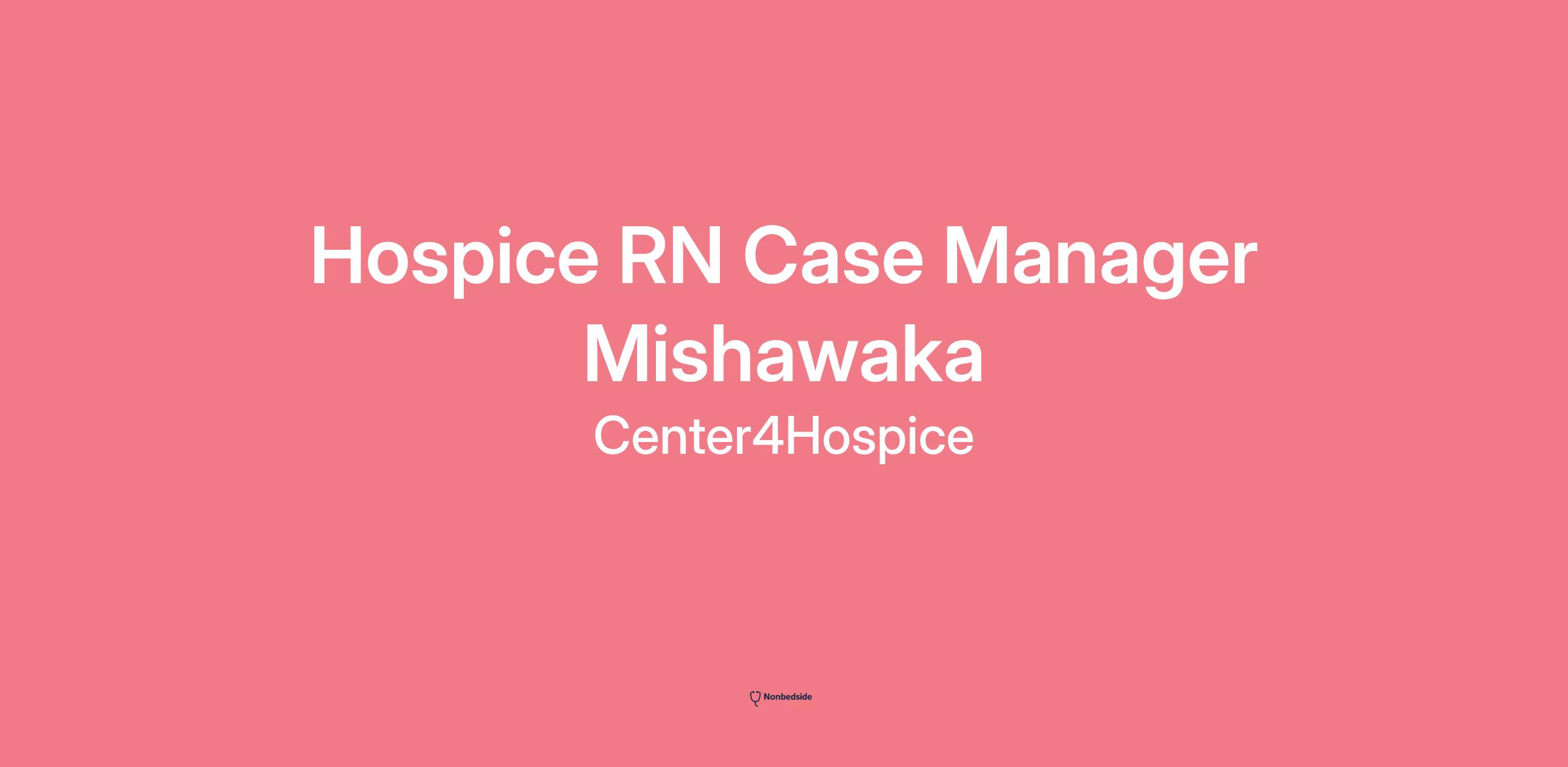 Overview Hospice RN Case Manager Mishawaka at Center4Hospice. This position requires driving a personal vehicle. Typical schedule is Monday–Friday, 8:00am–5:00pm, with some weekend rotation.