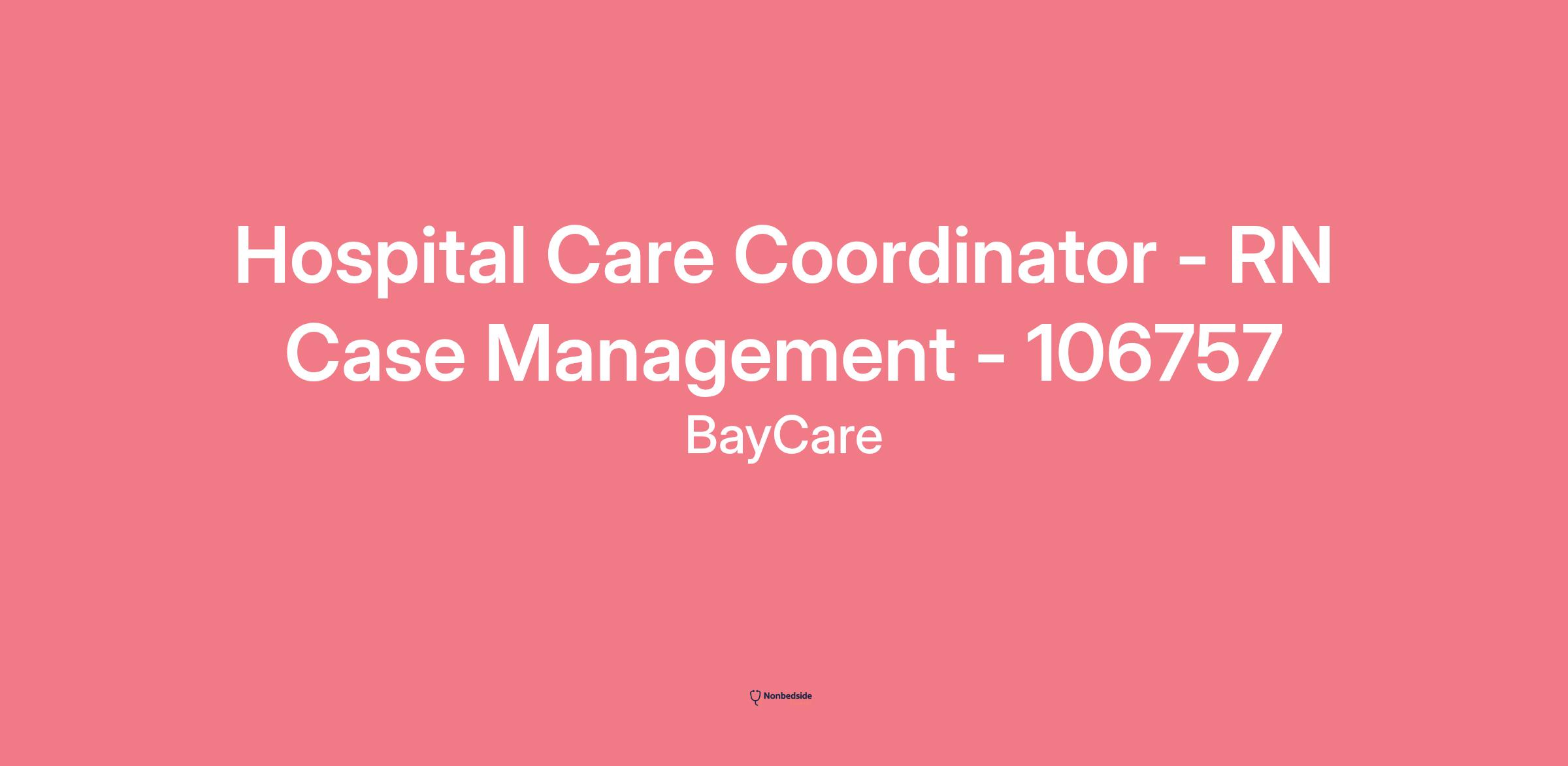 Hospital Care Coordinator - RN Case Management - 106757