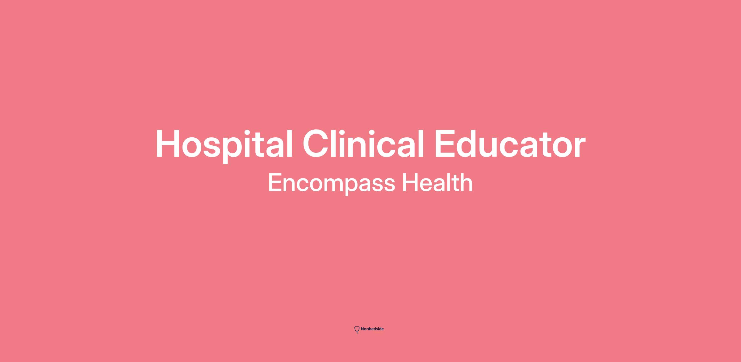 Overview Join to apply for the Hospital Clinical Educator role at Encompass Health.