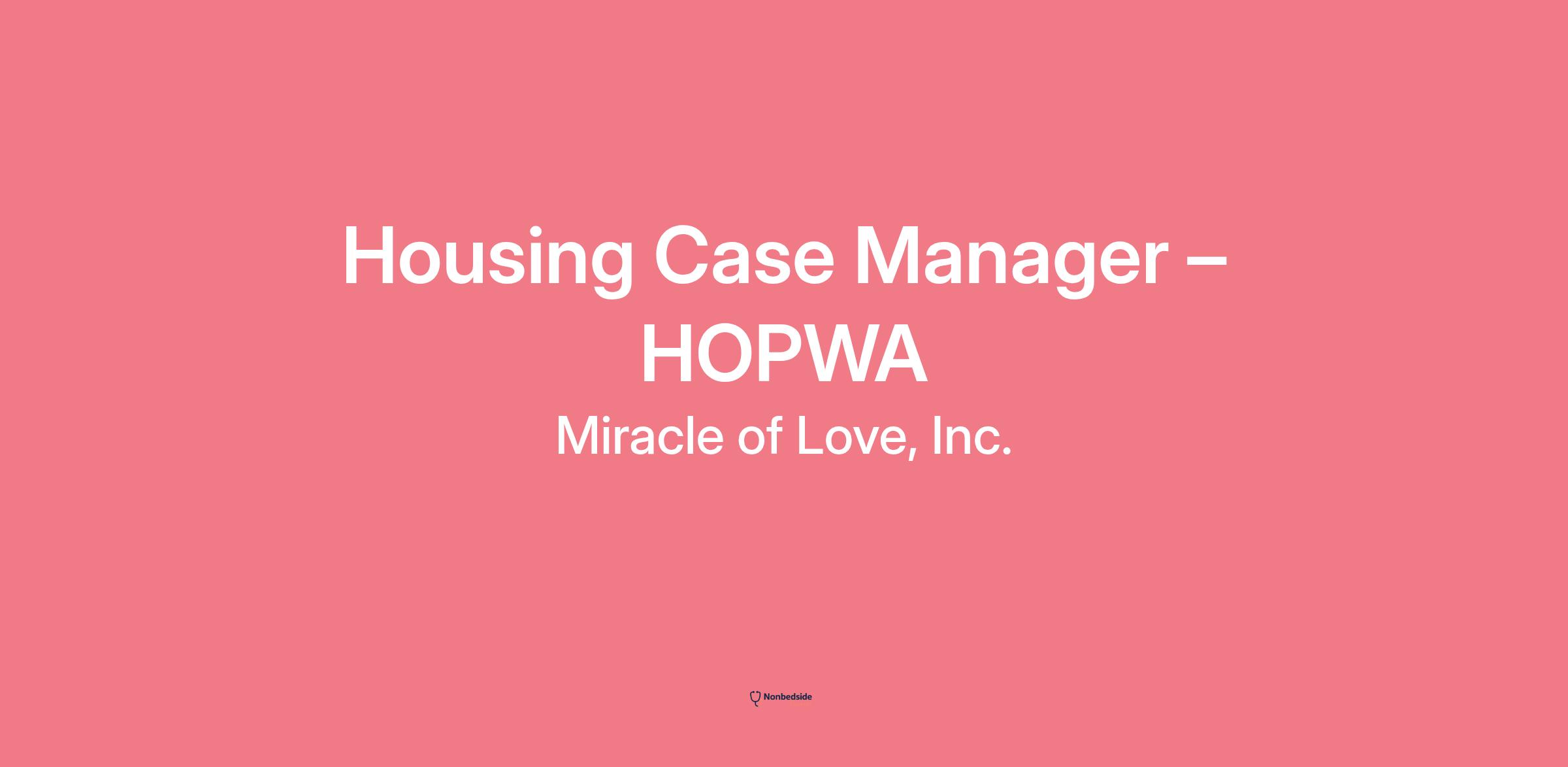 The Housing Case Manager provides housing case management services, including assessing the client’s needs, conducting housing evaluations/assessments, determining eligibility, developing individualized care plans, and maintaining documentation of services and staff activities. Providing education and support to clients, family members, and landlords as required. Making appropriate referrals and consultations both within and outside the agency based on housing needs identified and recommendations. Monitoring all aspects of clients’ housing situation. Preparing and maintaining client records to the standard of Miracle of Love (MOL).
