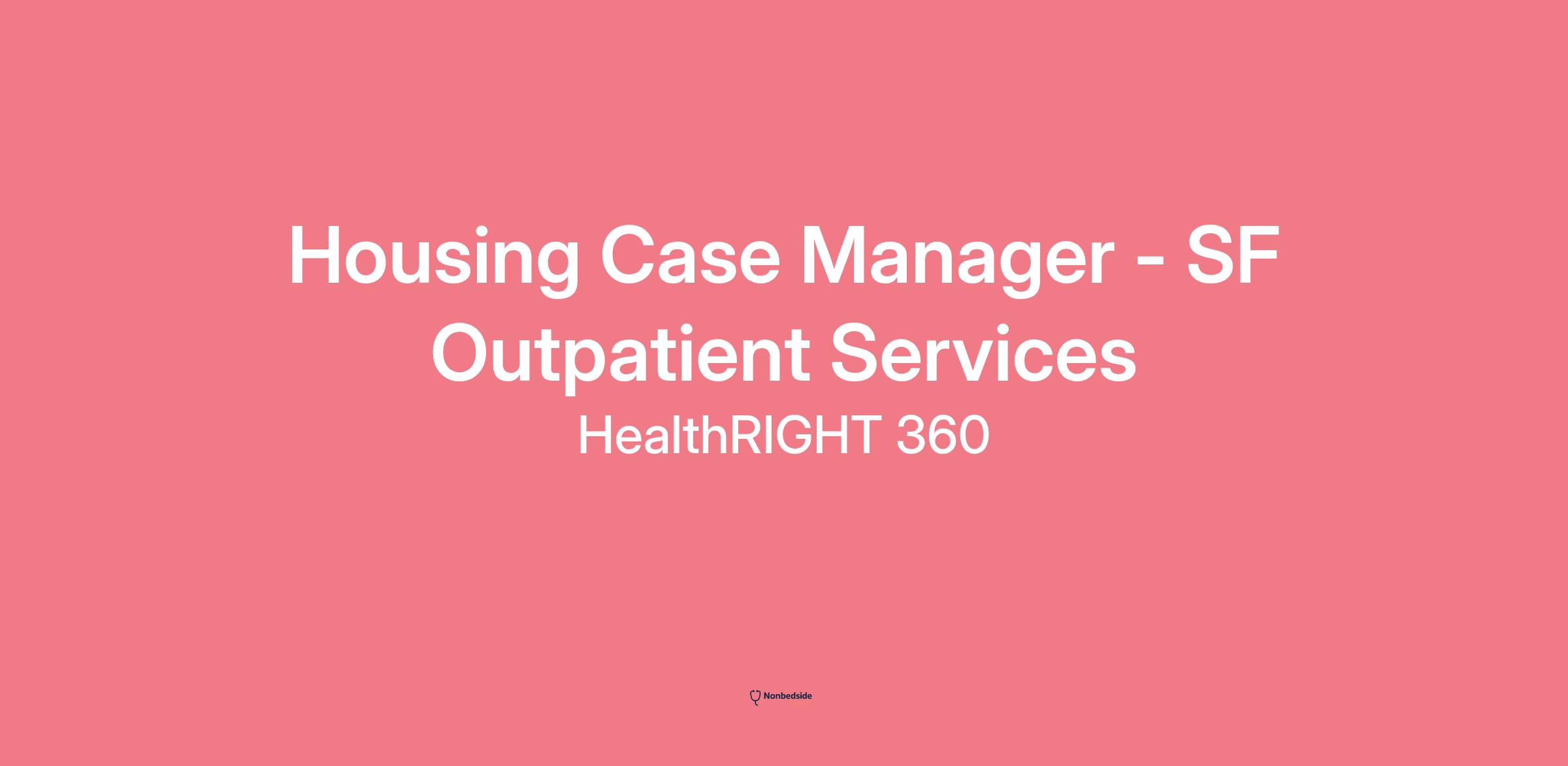 Join to apply for the Housing Case Manager - SF Outpatient Services role at HealthRIGHT 360