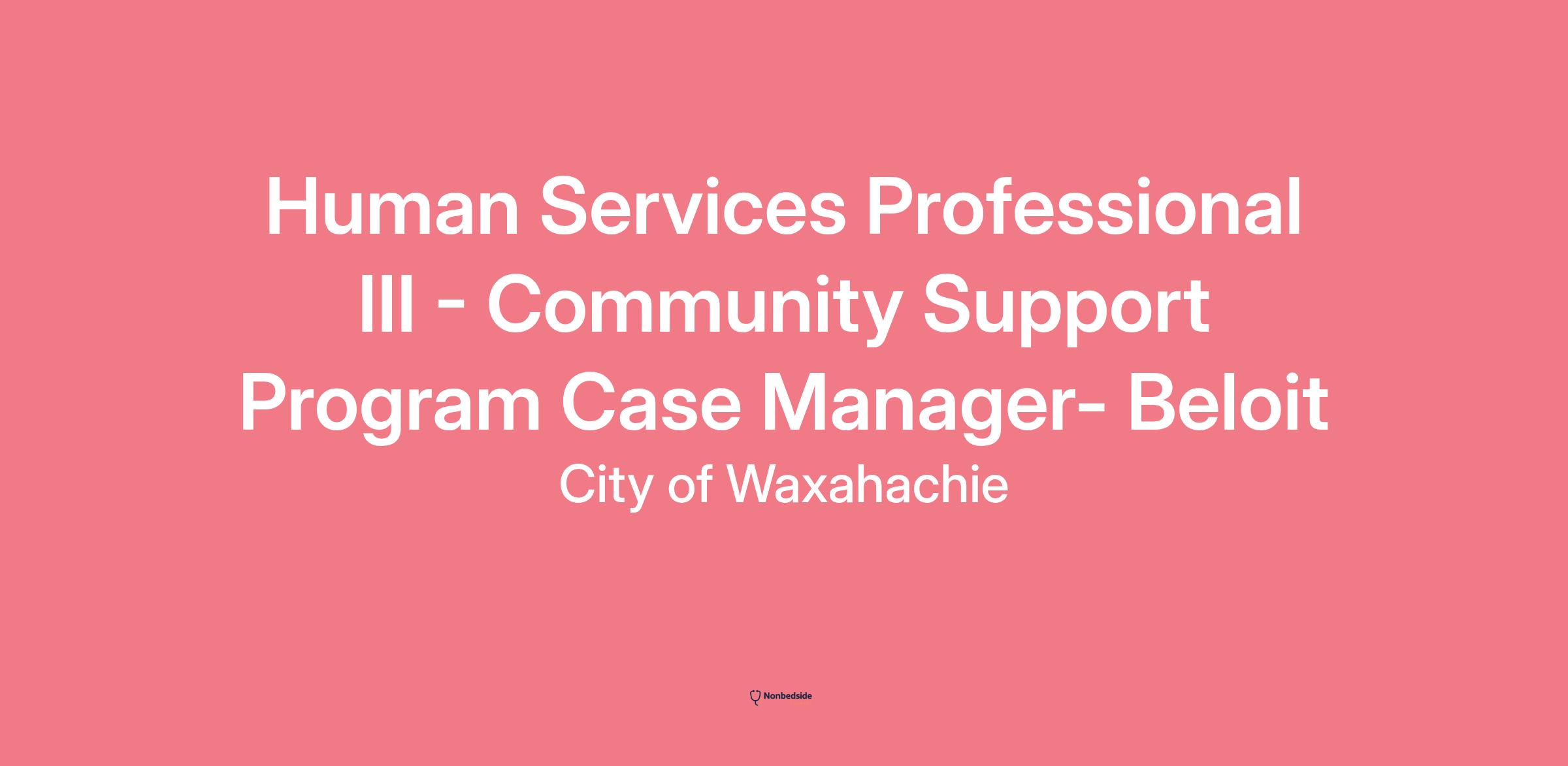 Human Services Professional III – Community Support Program Case Manager – Beloit