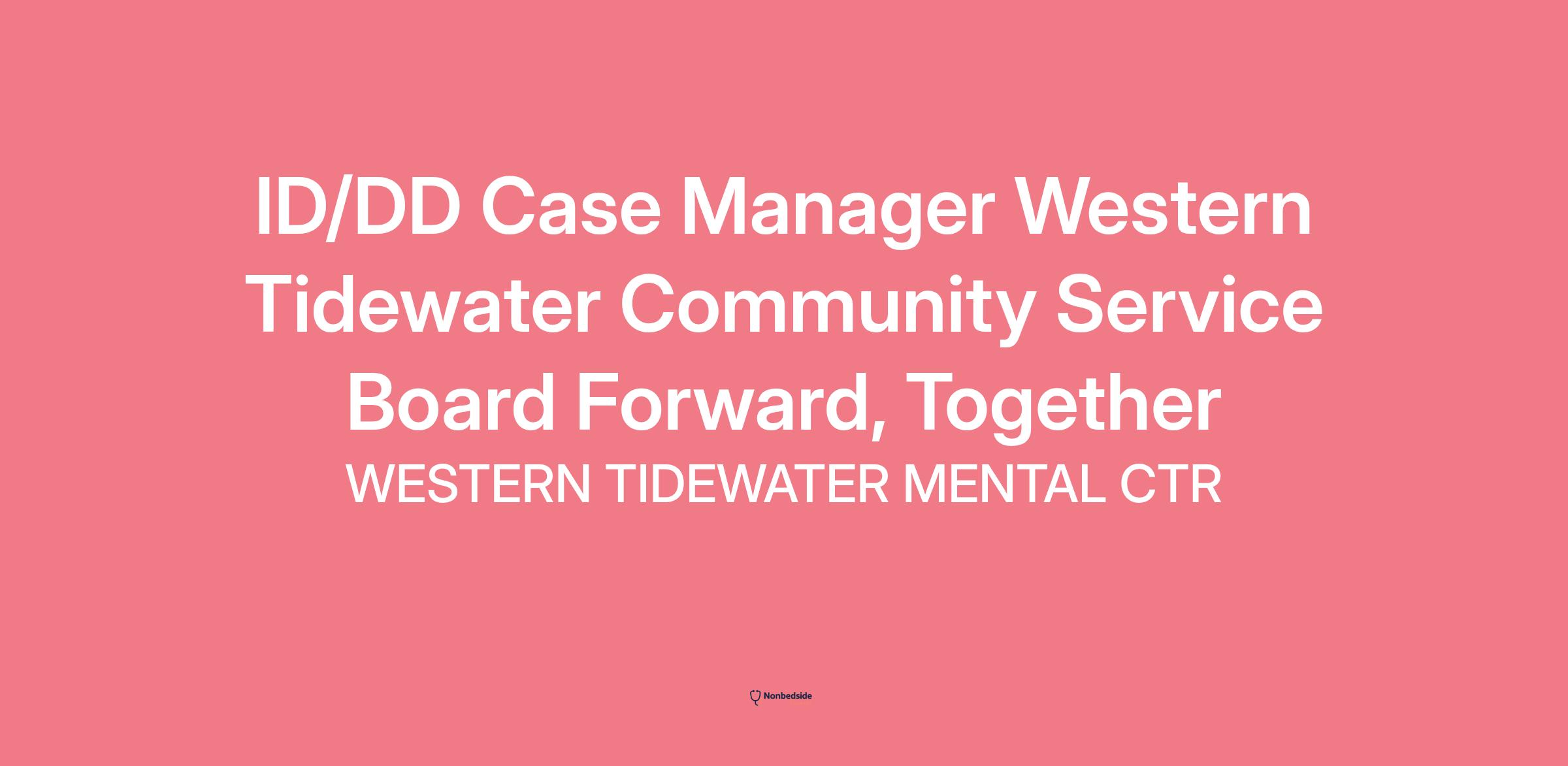 Western Tidewater CSB is seeking qualified Case Managers for various departments throughout our organization. ID/DD experience is preferred for this position. Responsibilities and Duties for ID/DD Case Manager: Responsible for consumer assessment, service linkage, coordination, development, and implementation of a case management ISP