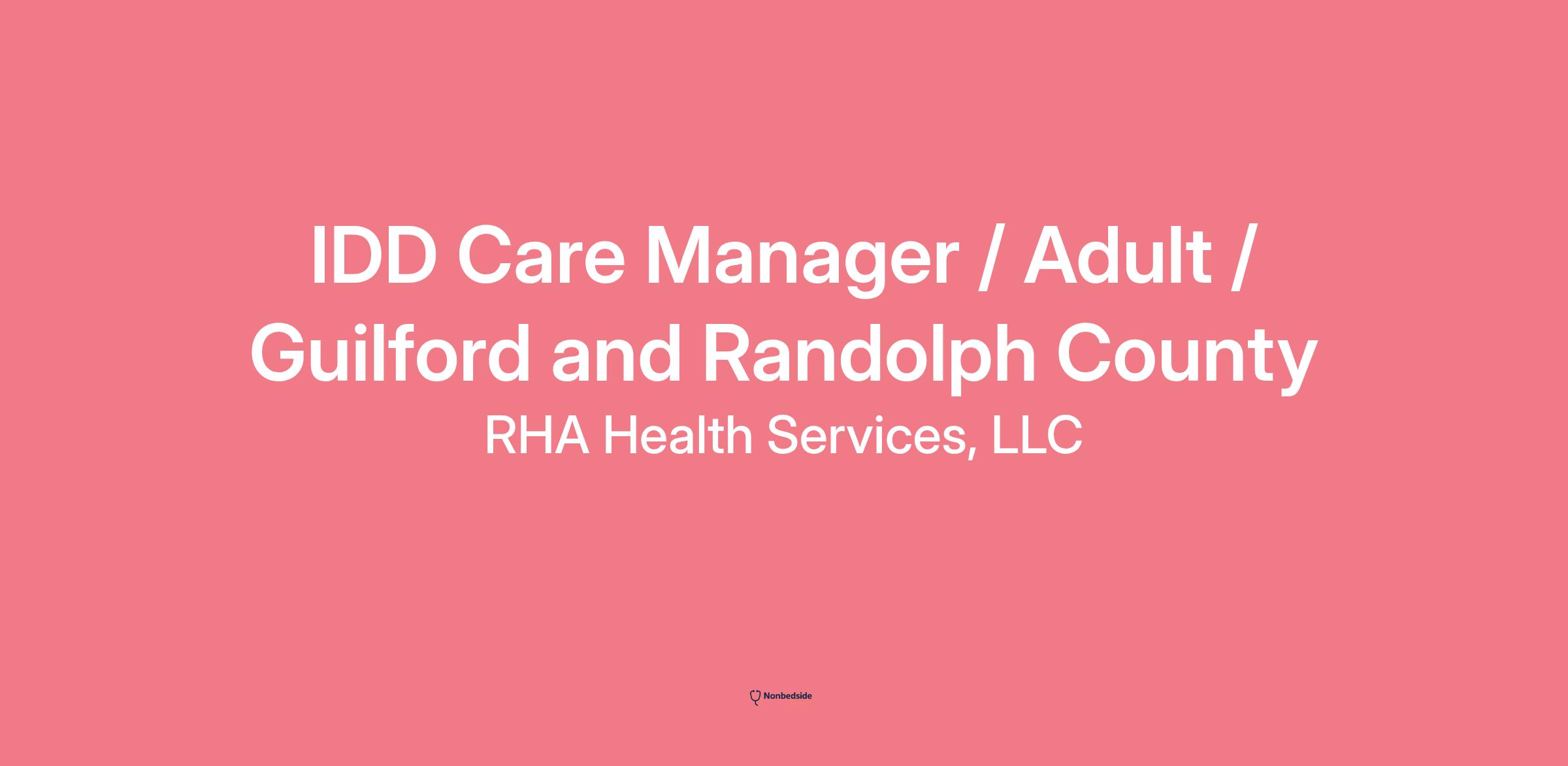 Overview IDD Care Manager / Adult / Guilford and Randolph County — We are hiring for this role at RHA Health Services, LLC. Pay: $20.00-$25.00. Location: Guilford or Davidson Counties.