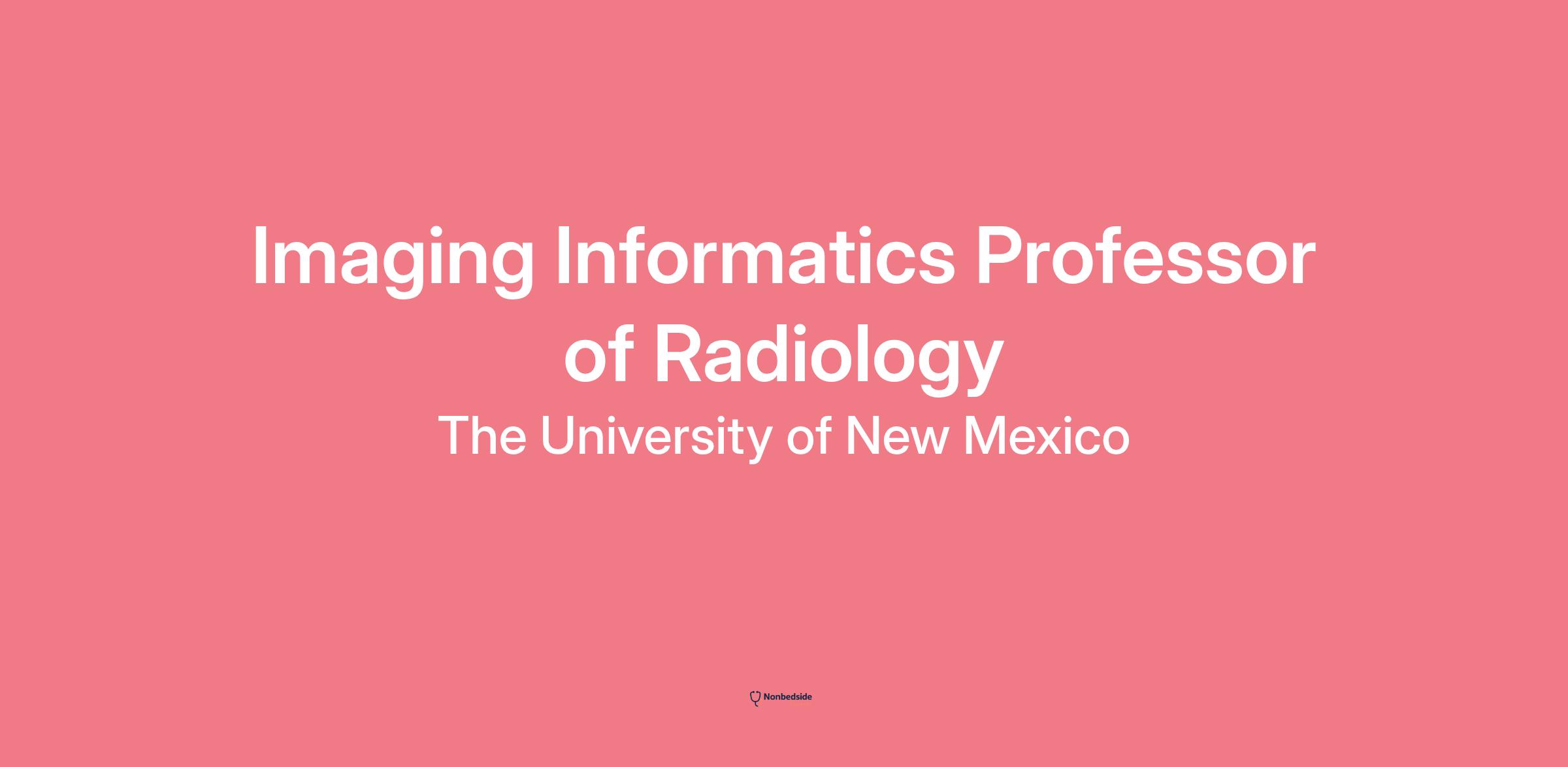 Imaging Informatics Professor of Radiology Position details given in the original posting are reformatted for clarity. This description preserves the content: