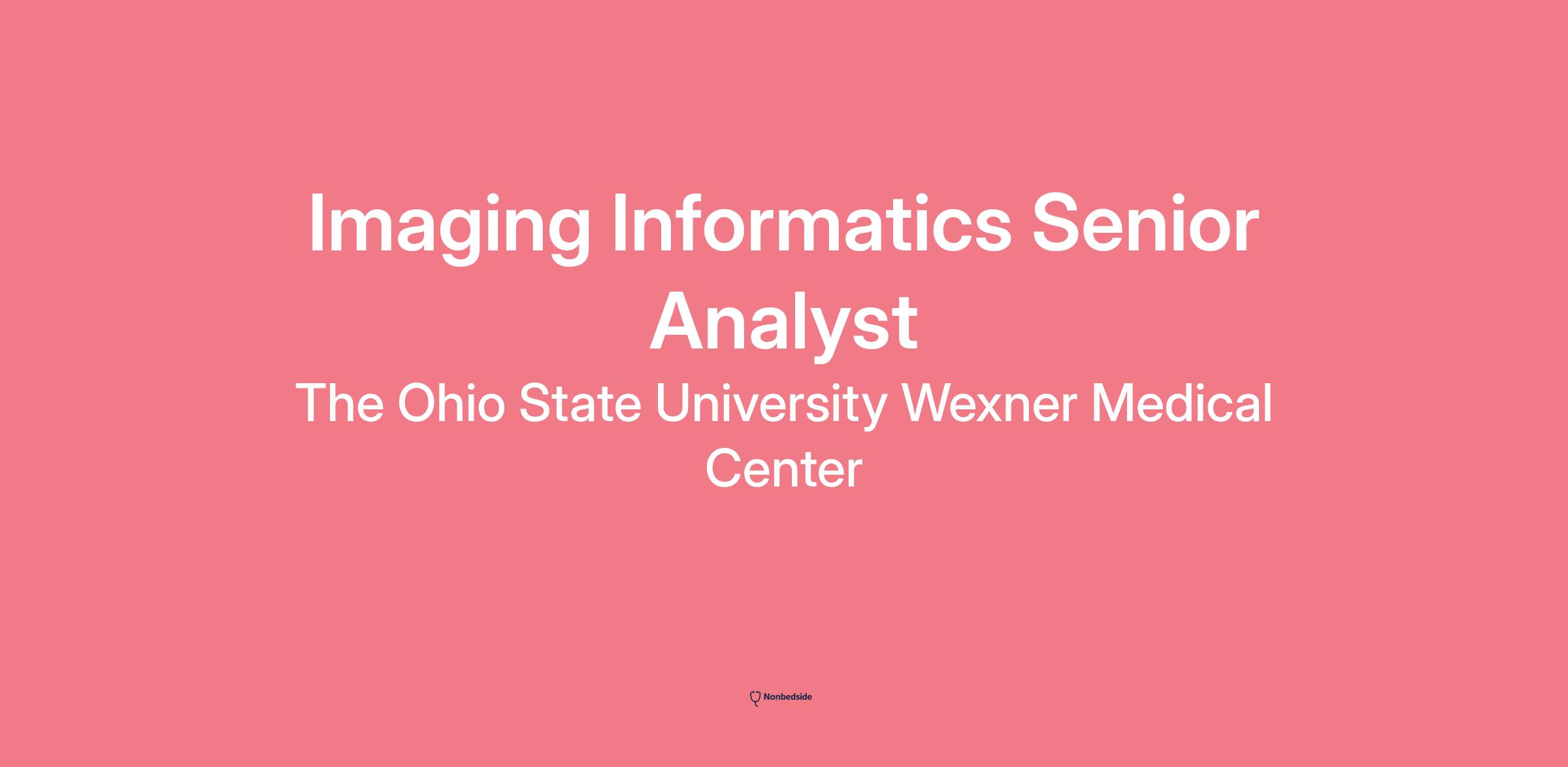 Join to apply for the Imaging Informatics Senior Analyst role at The Ohio State University Wexner Medical Center