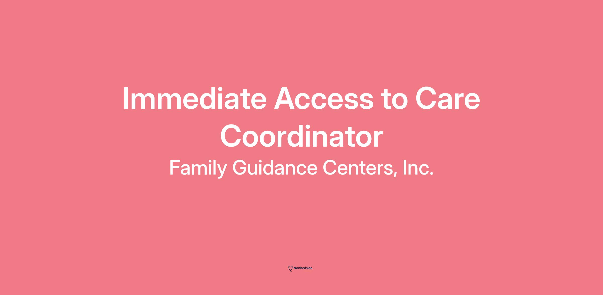 Provides coordination for all patients seeking treatment services at Family Guidance Centers, Inc. and screening for all levels of care and assists with the coordination of care.