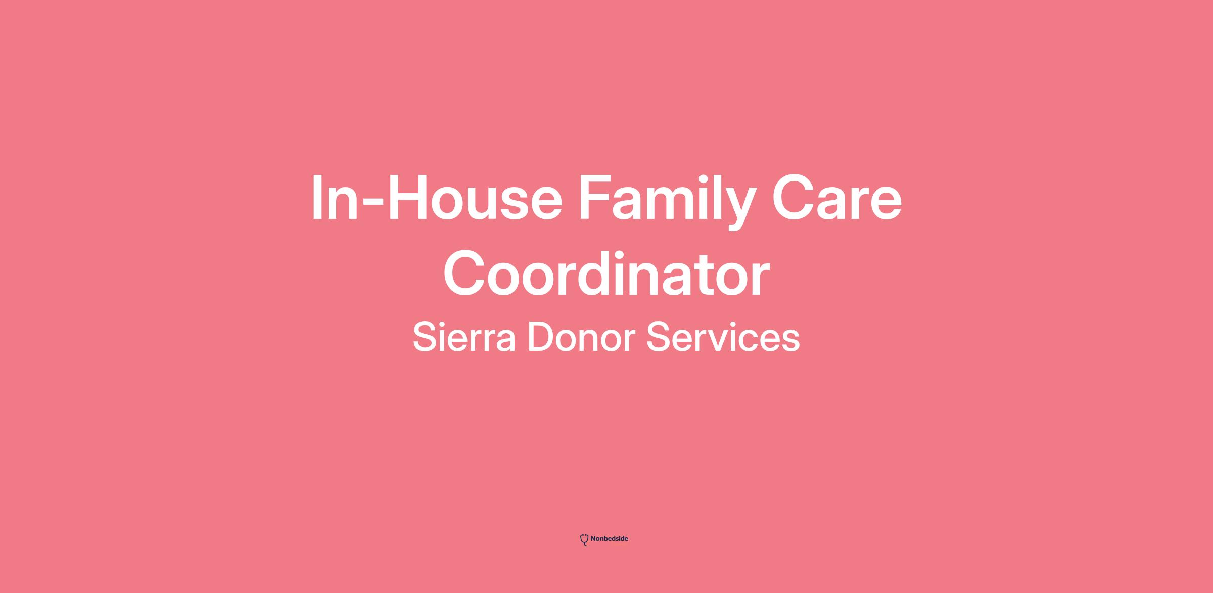 The In-house Family Care Coordinator is responsible for providing support for organ donation activities within the assigned facility/facilities to maximize opportunities for organ donation. Provides consistency and promotes trust in the donation process by ensuring excellent donor evaluation, management, and organ yield.
