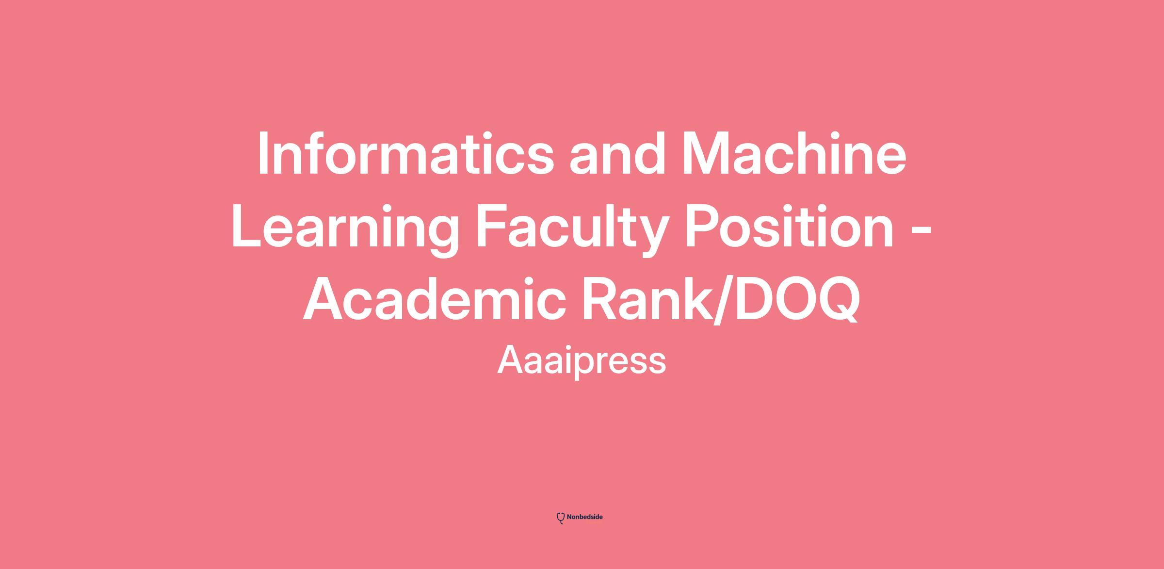 Position Summary The University of Nebraska Medical Center (UNMC) aims to hire three (3) tenure-leading faculty members with expertise in different subdisciplines of Informatics, including clinical research informatics, bioinformatics, image informatics, and public health informatics, with an emphasis on Machine Learning (ML) / Artificial Intelligence (AI) approaches. These faculty members will join a rich academic environment with strong links to the healthcare system poised to catalyze clinical and translational research. We anticipate hiring all three positions in 2023-2024.