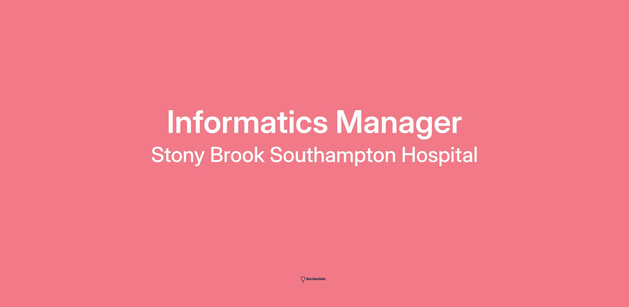 Join to apply for the Informatics Manager role at Stony Brook Southampton Hospital
