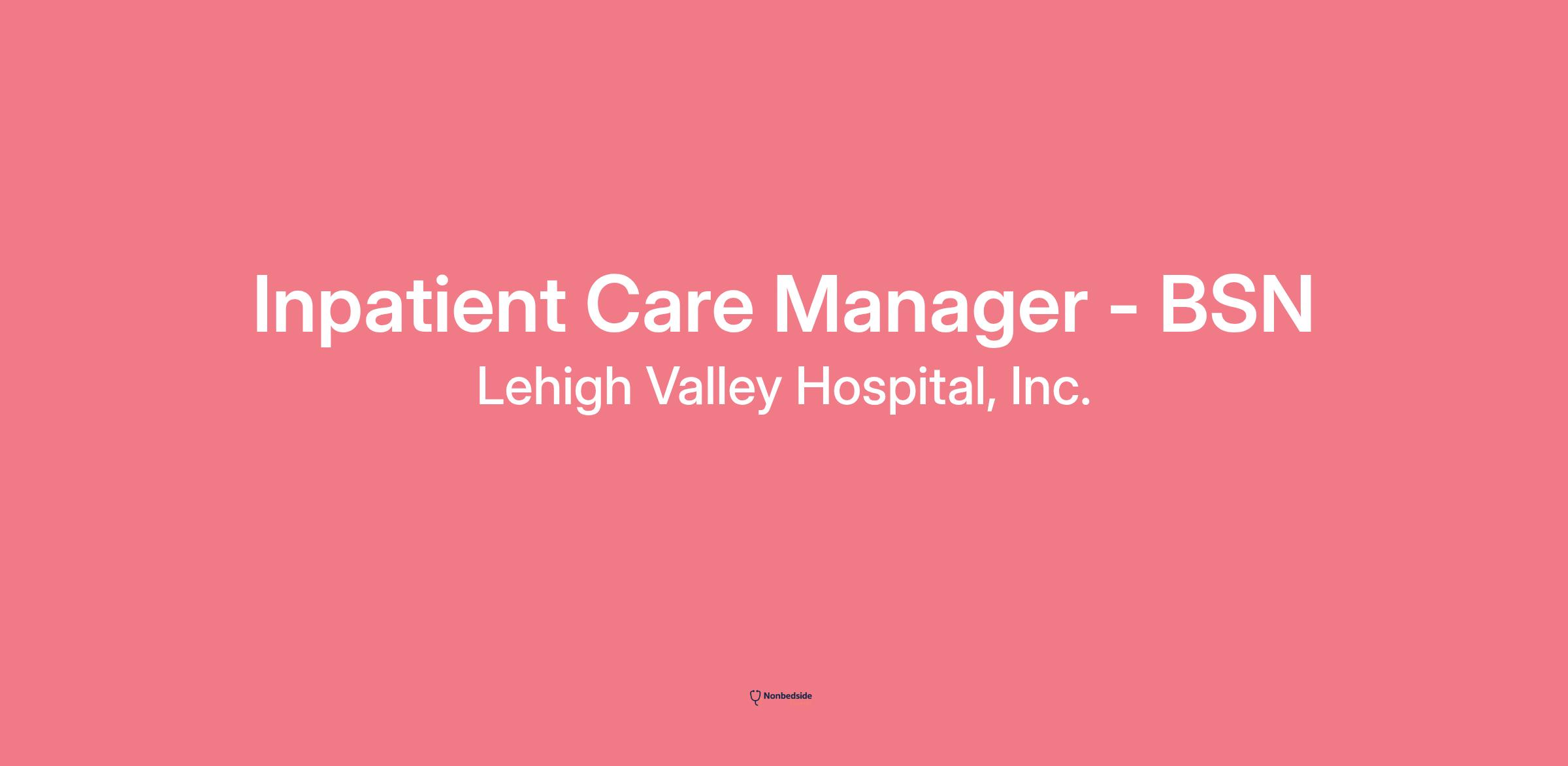 # Inpatient Care Manager - BSNPart-TimeDay ShiftDepartmentInpatient Case Management - CARShift DetailsDay Shift, Monday- Friday; 0800a-1830p. Saturday- Sunday; 0800a- 1830p with variable holiday rotation. PT; variable days.# Inpatient Care Manager - BSN**Join a team that delivers excellence.**Lehigh Valley Health Network (LVHN) is home to nearly 23,000 colleagues who make up our talented, vibrant and diverse workforce.Join our team and experience firsthand what it's like to be part of a health care organization that's nationally recognized, forward-thinking and offers plenty of opportunity to do great work.Imagine a career at one of the nation's most advanced health networks.Be part of an exceptional health care experience. Join the inspired, passionate team at Lehigh Valley Health Network, a nationally recognized, forward-thinking organization offering plenty of opportunity to do great work.LVHN has been ranked among the "Best Hospitals" by U.S. News & World Report for 23 consecutive years. We're a Magnet(tm) Hospital, having been honored five times with the American Nurses Credentialing Center's prestigious distinction for nursing excellence and quality patient outcomes in our Lehigh Valley region. Finally, Lehigh Valley Hospital - Cedar Crest, Lehigh Valley Hospital - Muhlenberg, Lehigh Valley Hospital- Hazleton, and Lehigh Valley Hospital - Pocono each received an 'A' grade on the Hospital Safety Grade from The Leapfrog Group in 2020, the highest grade in patient safety. These recognitions highlight LVHN's commitment to teamwork, compassion, and technology with an unrelenting focus on delivering the best health care possible every day.Whether you're considering your next career move or your first, you should consider Lehigh Valley Health Network. **Summary** Coordinates patient care; assesses, evaluates, and updates the care plan; and functions as a clinician, case manager, and educator to achieve optimal clinical and quality outcomes. Manages care and resources to reduce unnecessary utilization and collaborates in the development and implementation of performance improvement activities. **Job Duties*** Assesses the patient at the point of entry to the health care system in order to identify the expected length of stay, anticipated post-hospital care needs, and documents all care in the EHR appropriately.* Assists in the development, implementation, and evaluation of a multidisciplinary, individualized patient plan of care that includes an appropriate transition plan.* Analyzes patient outcomes and hospital performance indicators and makes suggestions for areas of improvement.* Establishes patient care management plans, interventions, treatment goals, and self-management goals and assesses the health care, educational, and psychosocial needs of the patient/family.* Collaborates with multidisciplinary healthcare teams and provides the patient and/or family in the development and implementation of plans.* Develops and maintains knowledge of Medicare, Medicaid, and key payer benefits and reimbursement methodologies.* Assists patients/families with self-management through education, visits, and telephonic engagement and encourages and supports patient adherence to their care plans.* Communicates with physicians, patients, families, and other members of the healthcare team to coordinate transition planning.* Researches, evaluates, and recommends resources to meet medical and non-medical needs of patients and families. **Minimum Qualifications*** Bachelor’s Degree Nursing* 3 years experience in one of the following settings: care coordination, disease management, home health care, hospital, or physician office setting and* 1 year prior electronic medical record (EMR) experience.* Ability to incorporate strategies for interacting with persons from diverse backgrounds.* Ability to set priorities to coordinate care plans efficiently.* Knowledge of computer applications and analytical tools.* Knowledge of nursing theory and application of learning theory.* Proven leadership skills.* RN - Licensed Registered Nurse\_PA - State of Pennsylvania Upon Hire **Preferred Qualifications*** Master’s Degree Nursing* CCM - Certified Case Manager CCMC - State of Pennsylvania* ACM - Accredited Case Manager ACMA - State of Pennsylvania **Physical Demands** Lift and carry 25 lbs. frequent sitting/standing, frequent keyboard use, \*patient care providers may be required to perform activities specific to their role including kneeling, bending, squatting and performing CPR. Job Description Disclaimer: This position description provides the major duties/responsibilities, requirements and working conditions for the position. It is intended to be an accurate reflection of the current position, however management reserves the right to revise or change as necessary to meet organizational needs. Other responsibilities may be assigned when circumstances require.Lehigh Valley Health Network is an equal opportunity employer. In accordance with, and where applicable, in addition to federal, state and local employment regulations, Lehigh Valley Health Network will provide employment opportunities to all persons without regard to race, color, religion, sex, age, national origin, sexual orientation, gender identity, disability or other such protected classes as may be defined by law. All personnel actions and programs will adhere to this policy. Personnel actions and programs include, but are not limited to recruitment, selection, hiring, transfers, promotions, terminations, compensation, benefits, educational programs and/or social activities.Lehigh Valley Health Network does not accept unsolicited agency resumes. Agencies should not forward resumes to our job aliases, our employees or any other organization location. Lehigh Valley Health Network is not responsible for any agency fees related to unsolicited resumes.## LocationLehigh Valley Hospital- Carbon2128 Blakeslee Boulevard Dr E, 18235, Lehighton, United States()