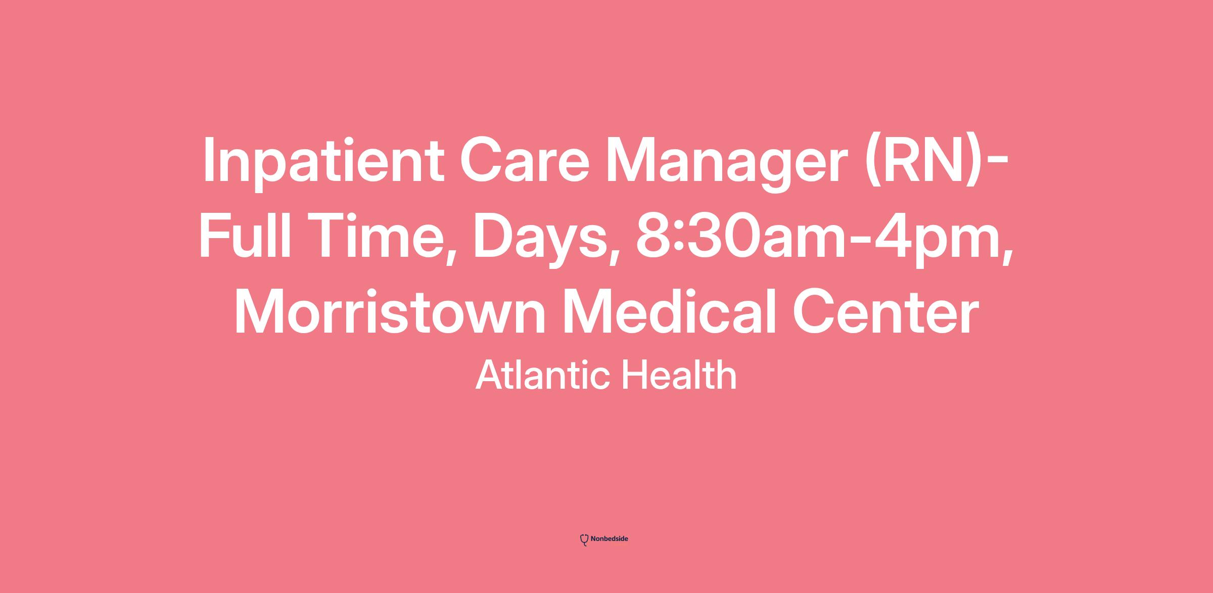 Join to apply for the Inpatient Care Manager (RN) - Full Time, Days, 8:30am-4pm, Morristown Medical Center role at Atlantic Health.
