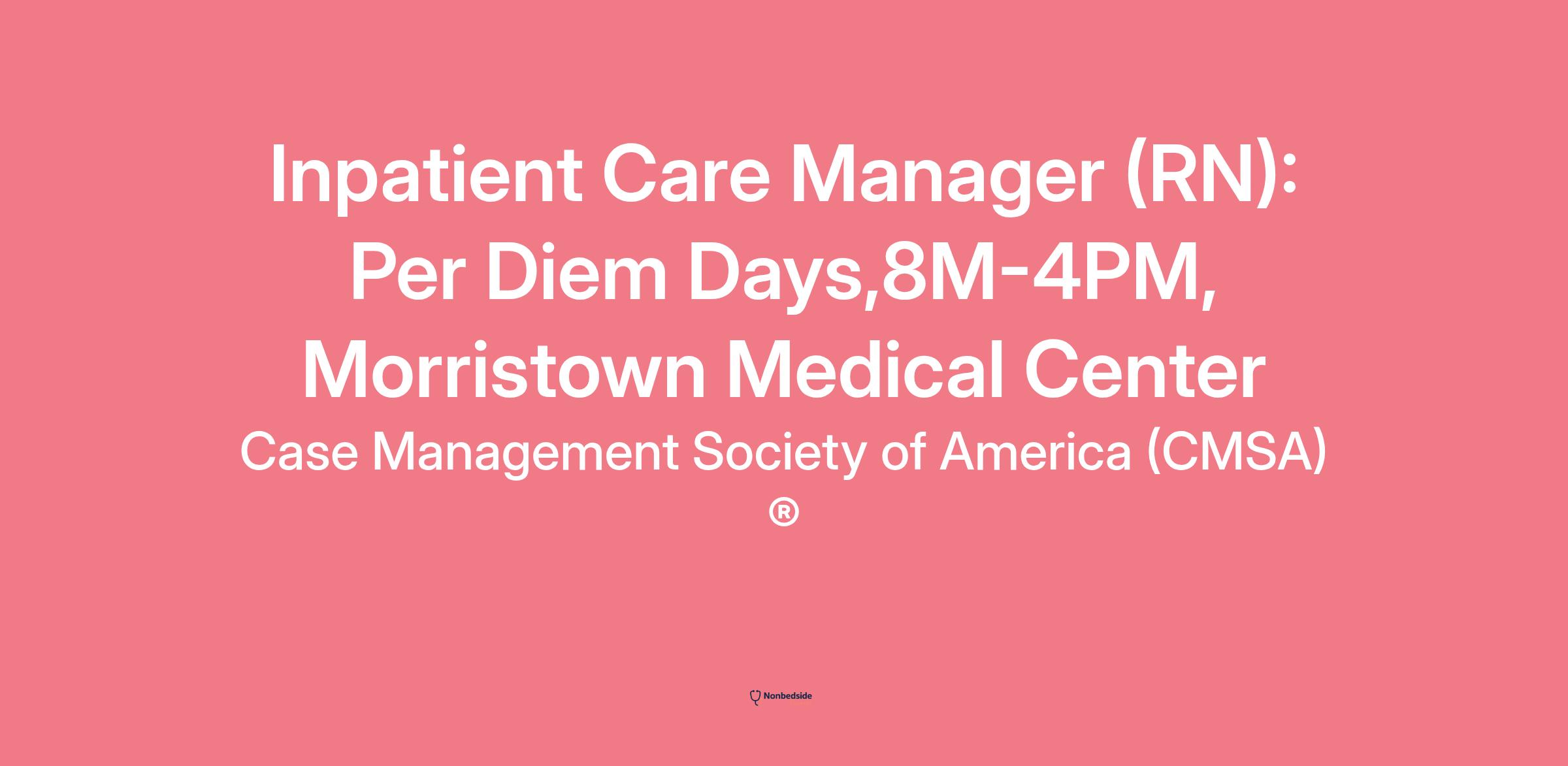 Atlantic Health System is seeking a dynamic Registered Nurse to join the energetic and innovative team of healthcare professionals as a Inpatient Care Manager on the Care Management Team at Morristown Medical Center. This is a per diem position in which the candidate will provide their services during the day, Monday through Friday with occasional weekends.