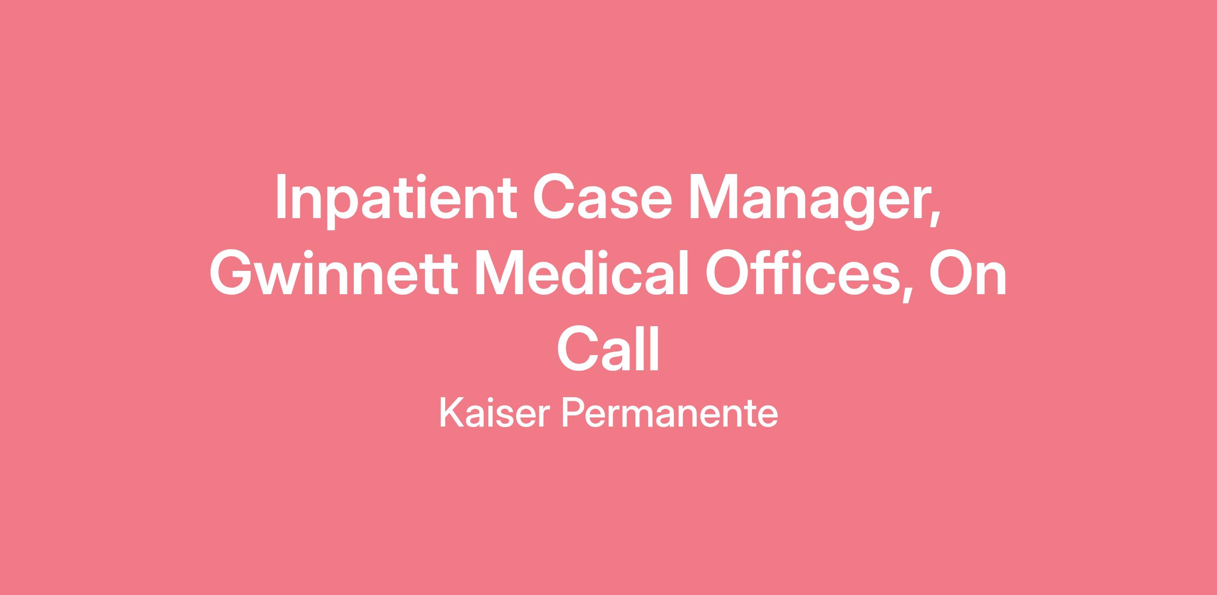 Inpatient Case Manager, Gwinnett Medical Offices, On Call