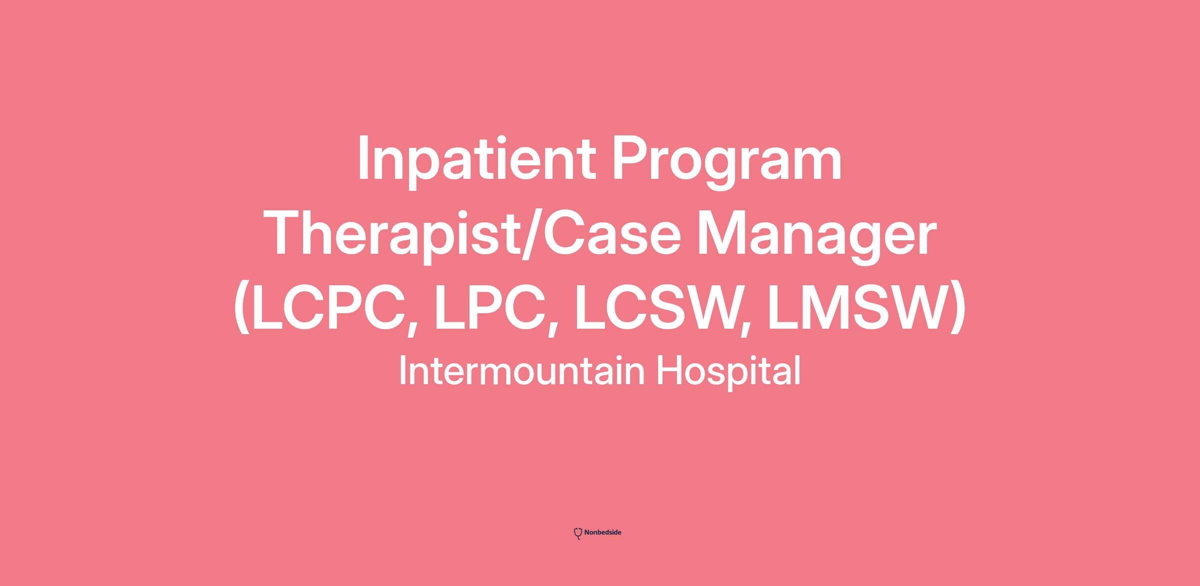 Inpatient Program Therapist/Case Manager (LCPC, LPC, LCSW, LMSW) Intermountain Hospital is looking for a dynamic Inpatient Program Therapist/Case Manager to work with a variety of patients. If you have a desire to work in an engaging environment with a team of professionals dedicated to the healing and health of the patients we serve, we want to hear from you!
