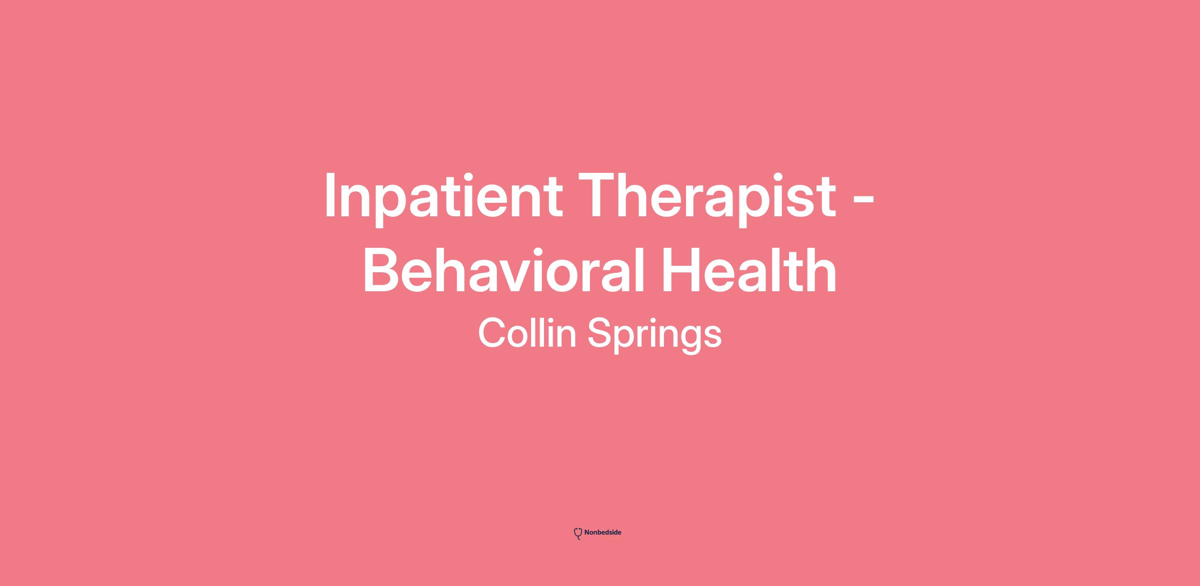 Collin Springs is part of Lifepoint Health, a diversified healthcare delivery network with facilities coast to coast. We are driven by a profound commitment to prioritize your well-being so you can provide exceptional care to others. As an Inpatient Therapist joining our team, you're embracing a vital mission dedicated to making communities healthier®. Join us on this meaningful journey where your skills, compassion and dedication will make a remarkable difference in the lives of those we serve.