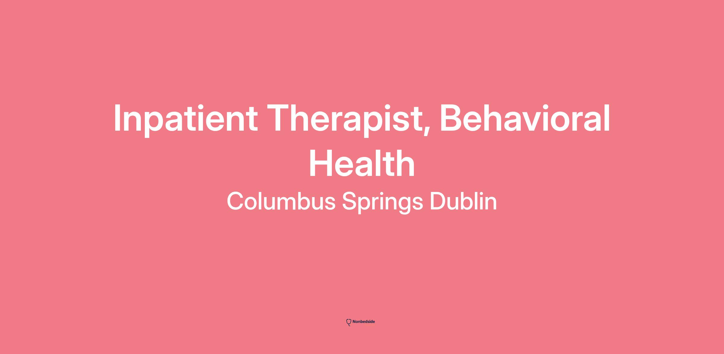 Columbus Springs Dublin is part of Lifepoint Health, a diversified healthcare delivery network with facilities coast to coast. We are driven by a profound commitment to prioritize your well-being so you can provide exceptional care to others. As an Inpatient Therapist joining our team, you're embracing a vital mission dedicated to making communities healthier ®. Join us on this meaningful journey where your skills, compassion and dedication will make a remarkable difference in the lives of those we serve.