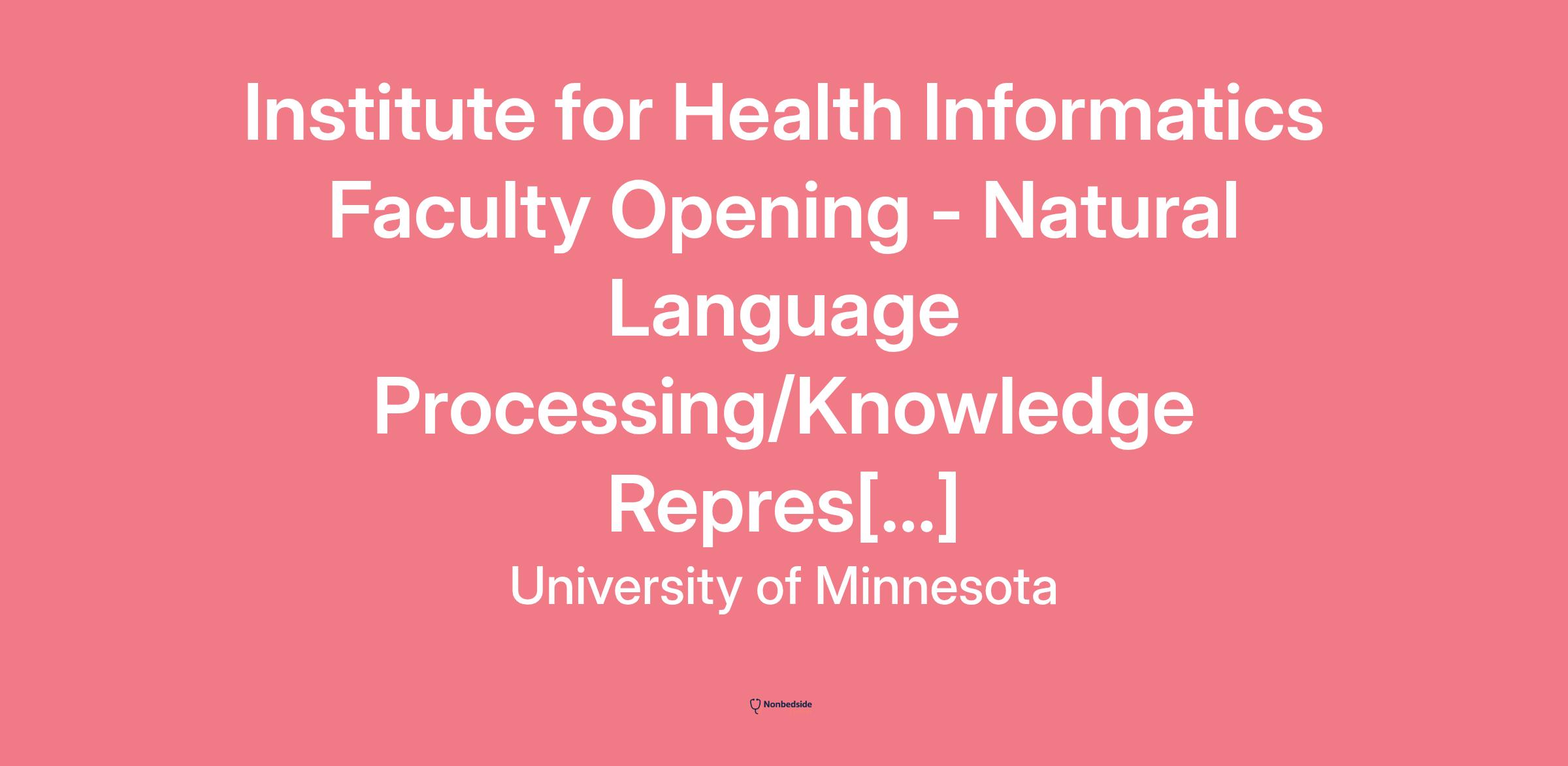 University of Minnesota Institute for Health Informatics Faculty Position in Natural Language Processing/Knowledge Representation/Relational Data Modeling (Tenure/Tenure Track)