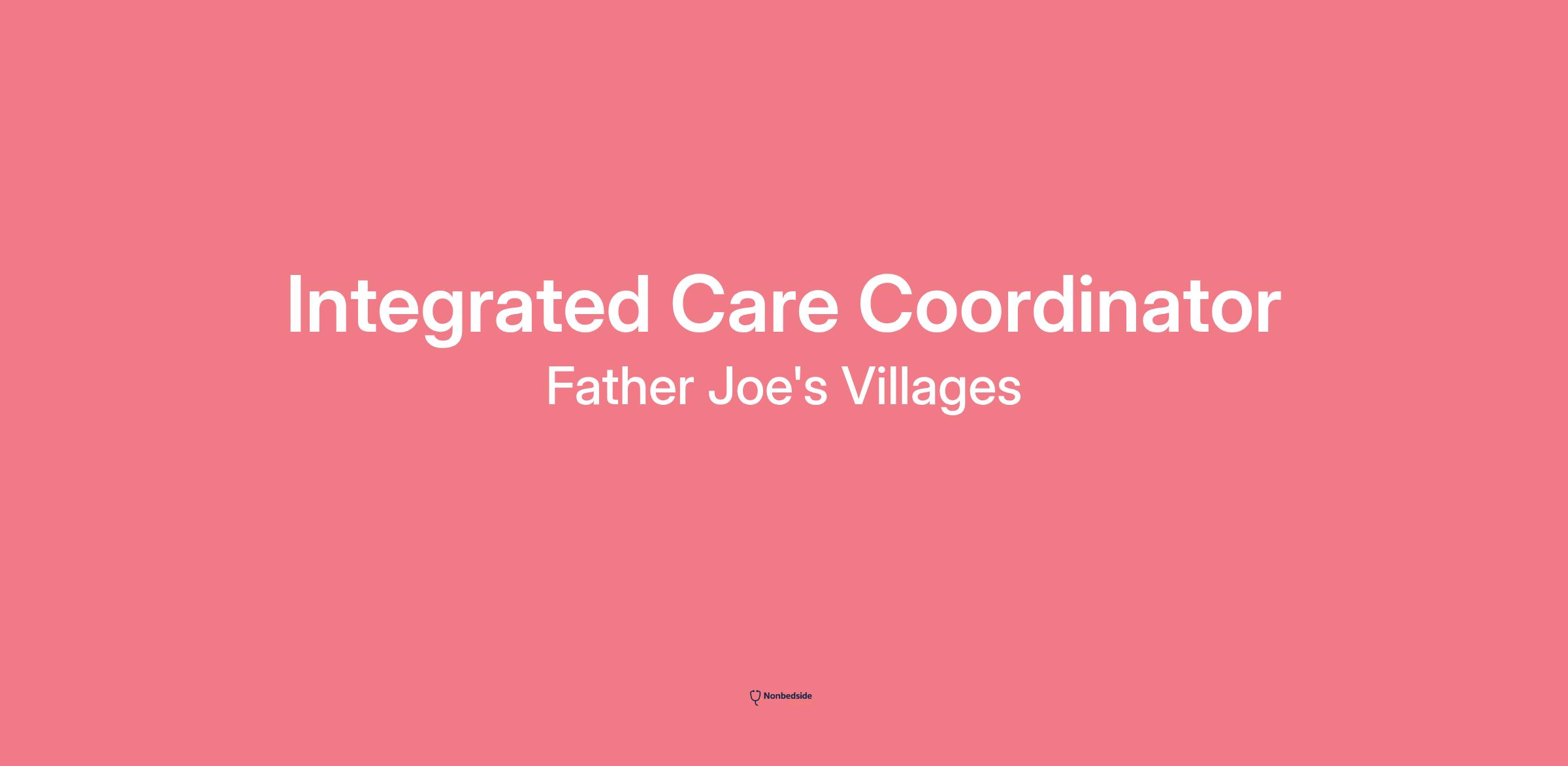 Join to apply for the Integrated Care Coordinator role at Father Joe's Villages .
