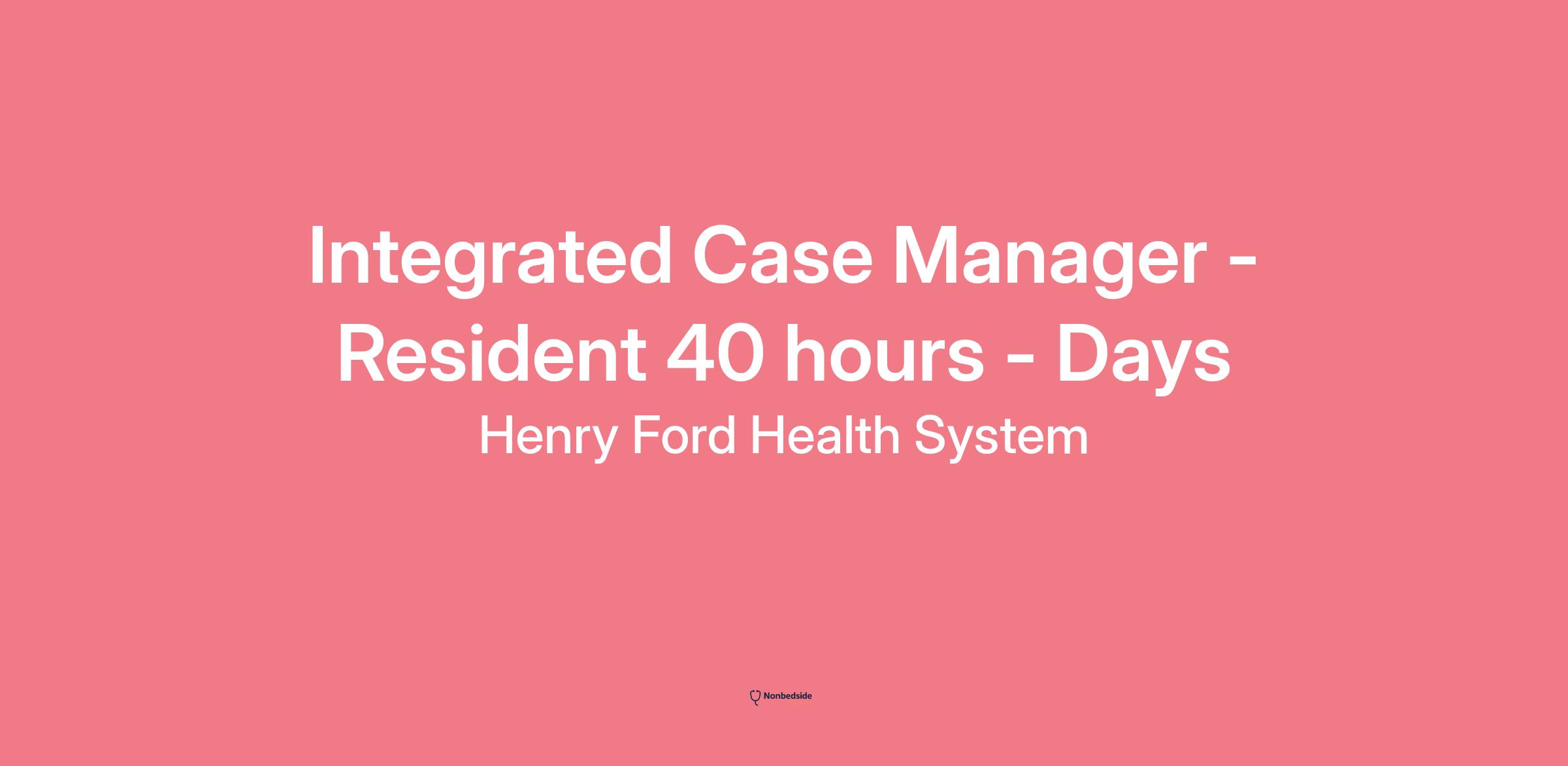 Overview The Integrated Case Manager-Resident is a member of the patient-centered care team or treatment team responsible for the collaborative practice of assessment, planning, facilitation, care coordination, evaluation and advocacy for options and services to meet an individual's and family's comprehensive health care needs though communication and available resources to promote patient safety, quality of care and cost effective outcomes.