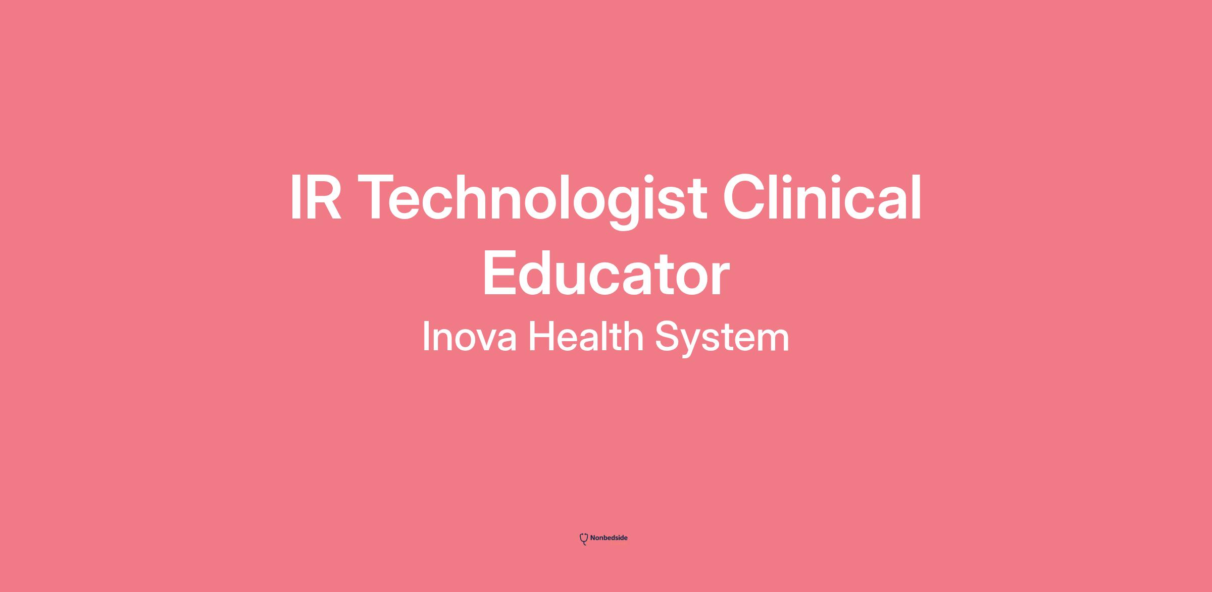Inova Fairfax Medical Center |is looking for a dedicated IR Technologist Clinical Educator to join the team. This role will be full‑time day shift. Sign‑on bonus and relocation assistance eligible.