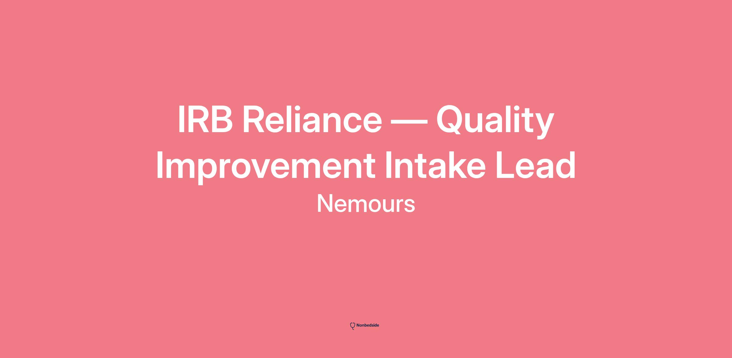 Nemours is seeking an IRB Reliance/Quality Improvement Intake Lead to join our team.