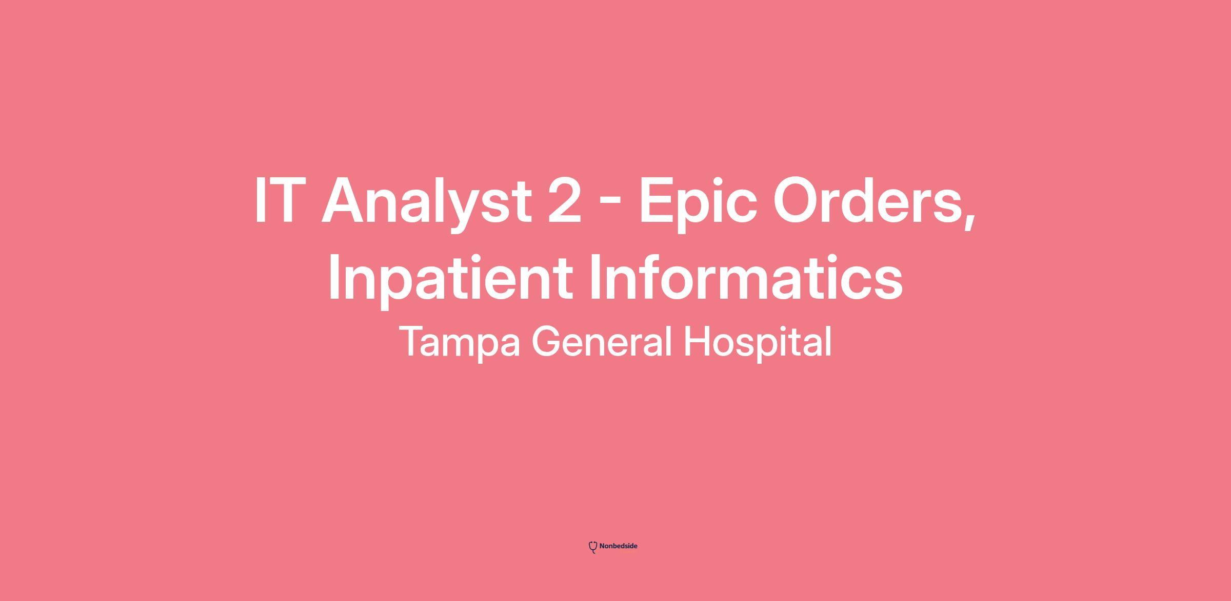 Join to apply for the IT Analyst 2 - Epic Orders, Inpatient Informatics role at Tampa General Hospital