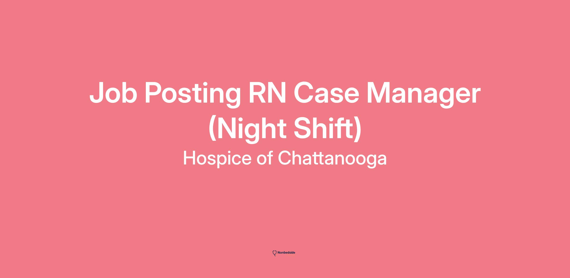 Our Hospice of Chattanooga team is looking for a full time Night Registered Nurse Case Manager (RNCM) that is ready to make a meaningful difference in the lives of the patients and families we serve in our Hospice Care Center!
