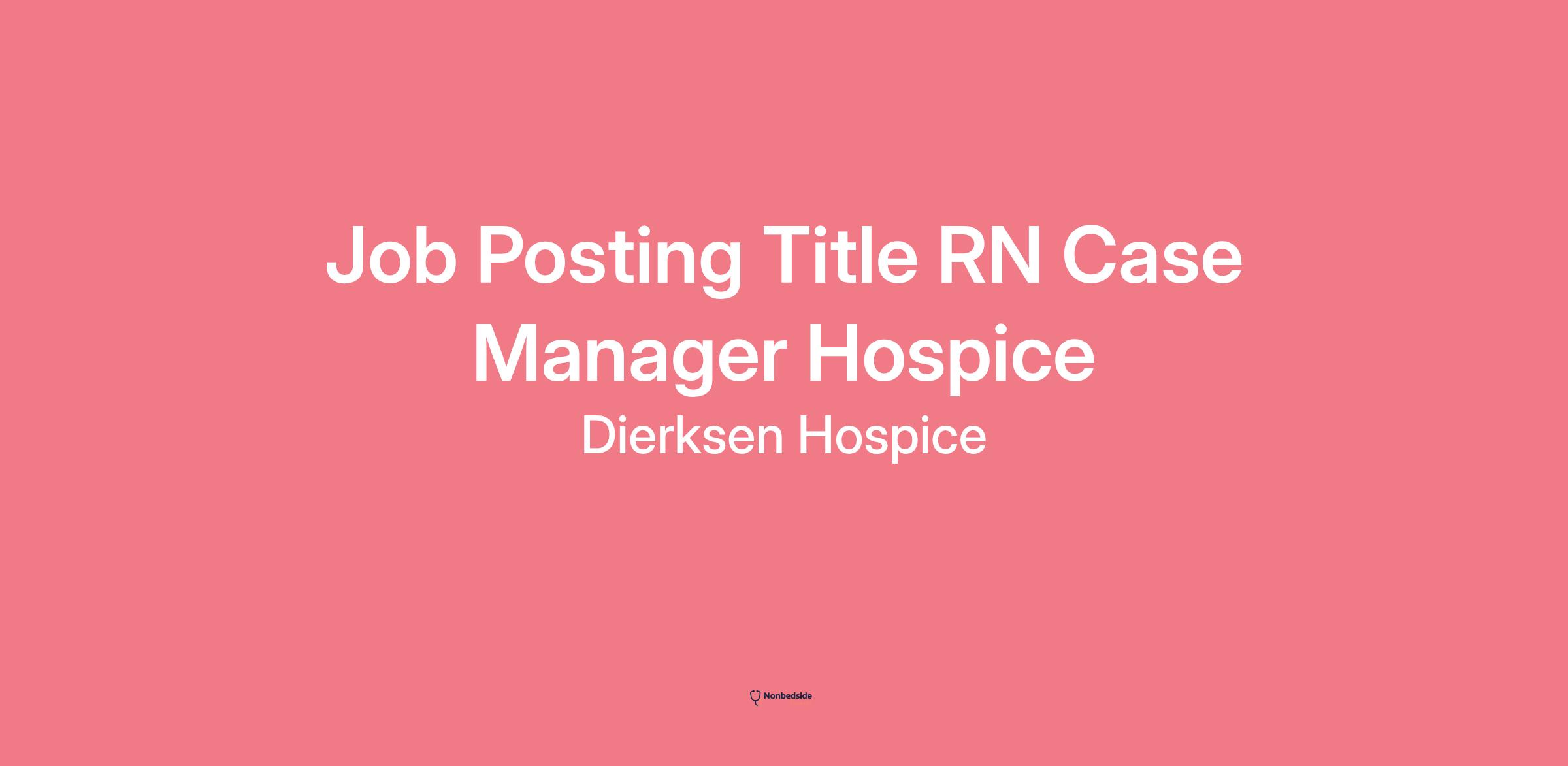 Overview Our Dierksen Hospice team is looking for a Full-time Registered Nurse Case Manager (RNCM) that is ready to make a meaningful difference in the lives of the patients and families we serve in and around the Texarkana Area!