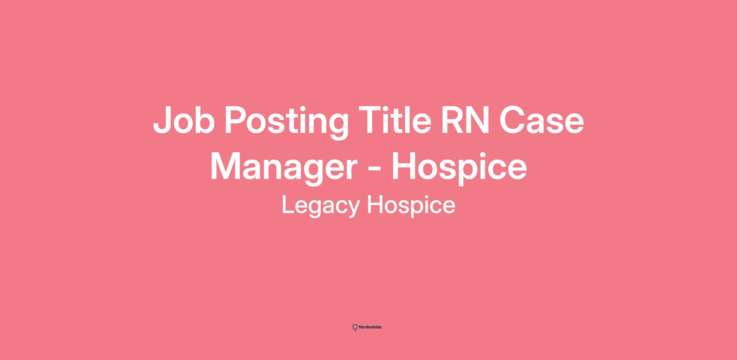 Overview Our LegacyHospice team is looking for a full-time Registered Nurse Case Manager (RNCM) that is ready to make a meaningful difference in the lives of the patients and families we serve in and around the areas of East End Richmond and Mechanicsville.