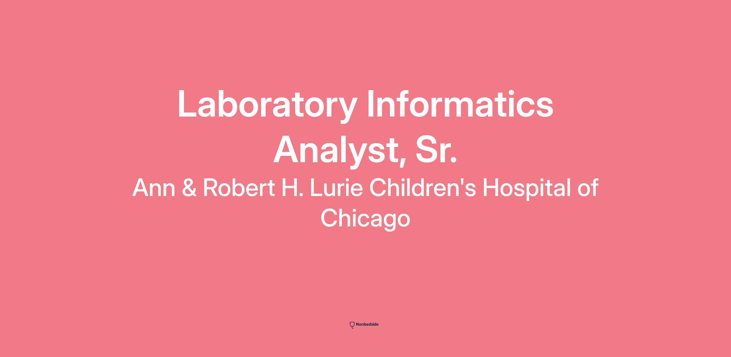 Join to apply for the Laboratory Informatics Analyst, Sr. role at Ann & Robert H. Lurie Children's Hospital of Chicago